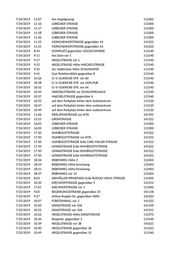7/24/2019 7:54 WILHELM-KOBELT-STR. Ecke LESSINGSTRASSE 112262 7/24/2019 7:55 LESSINGSTRASSE gegenüber AXA 112372 7/24/2019 7:59 SCHELLHEIMERPLATZ gegenüber 2 112062 7/24/2019 8:04 KÖRNERSTRASSE gegenüber 12 112403 7/24/2019 8:05 KÖRNERSTRASSE gegenüber 12 112403 7/24/2019 8:23 HANS-LÖSCHER-STRASSE Ecke Annastr. 112372 7/24/2019 8:24 HANS-LÖSCHER-STRASSE Ecke Annastr. 112372 7/24/2019 8:27 MATTHISSONSTRASSE vor 7A 141312 7/24/2019 8:30 MATTHISSONSTRASSE Ecke HANS-LÖSCHER-STRASSE 112262 7/24/2019 8:33 Arndtstr. Ecke HANS-LÖSCHER-STRASSE 112372 7/24/2019 8:37 Annastr. 112402 7/24/2019 8:47 MARTIN-AGRICOLA-STR. Ecke GOETHESTRASSE 112062 7/24/2019 8:52 HARSDORFER STRASSE vor 6 112402 7/24/2019 9:08 WESTERNPLAN vor 10B 112402 7/24/2019 9:14 WESTERNPLAN 112062 7/24/2019 11:01 NACHTWEIDE gegenüber 61E 113300 7/24/2019 10:59 NACHTWEIDE gegenüber 62A 141322 7/24/2019 11:00 NACHTWEIDE gegenüber 63A 141322 7/24/2019 11:16 LÜBECKER STRASSE 113300 7/24/2019 11:17 LÜBECKER STRASSE 113320 7/24/2019 11:19 LÜBECKER STRASSE 113300 7/24/2019 11:20 LÜBECKER STRASSE 113300 7/24/2019 11:40 KAISER-OTTO-RING vor 22C 141118 7/24/2019 15:38 Alter Markt vor BISTRO 141118 7/24/2019 15:40 Alter Markt vor 4-5 141118 7/24/2019 16:10 Breiter Weg vor 29 141621 7/24/2019 16:16 Alter Markt vor 4 141118 7/24/2019 16:21 Alter Markt vor 4-5 141118 7/24/2019 16:24 Alter Markt vor 3 141118 7/24/2019 17:06 Alter Markt vor 5 141118 7/24/2019 17:18 JULIUS-BREMER- STR. vor 8-10 113142 7/24/2019 18:06 JULIUS-BREMER- STR. vor 10 113120 7/24/2019 7:53 LESSINGSTRASSE Ecke WILHELM-KOBELT-STR. 112062 7/24/2019 7:55 WILHELM-KOBELT-STR. Ecke LESSINGSTRASSE 112372 7/24/2019 7:59 SPIELHAGENSTRASSE Ecke KÖRNERSTRASSE 112402 7/24/2019 8:00 KÖRNERSTRASSE gegenüber 2 112403 7/24/2019 8:23 Annastr. Höhe HANS-LÖSCHER-STRASSE 112402 7/24/2019 8:25 HANS-LÖSCHER-STRASSE Ecke Annastr. 112372 7/24/2019 8:27 HANS-LÖSCHER-STRASSE Ecke MATTHISSONSTRASSE 112272 7/24/2019 8:29 MATTHISSONSTRASSE Ecke HANS-LÖSCHER-STRASSE 112262 7/24/2019 8:32 Arndtstr. Ecke HANS-LÖSCHER-STRASSE 141312 7/24/2019 8:41 GOETHESTRASSE Ecke GOETHESTRASSE 112272 7/24/2019 8:42 GOETHESTRASSE Ecke IMMERMANNSTRASSE 141245 7/24/2019 8:43 GOETHESTRASSE Ecke IMMERMANNSTRASSE 112062 7/24/2019 8:51 MARTIN-AGRICOLA-STR. Ecke HARSDORFER STRASSE 112402 7/24/2019 9:11 WESTERNPLAN 112403 7/24/2019 11:01 NACHTWEIDE gegenüber 61E 113300 7/24/2019 11:02 NACHTWEIDE gegenüber 61D 113300