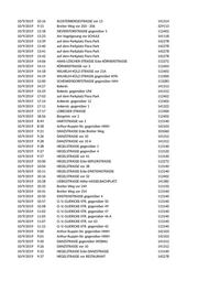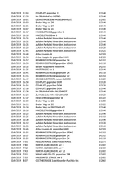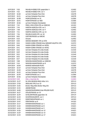 10/9/2019 9:30 WILHELM-KOBELT-STR. gegenüber 4 112402 10/9/2019 9:32 WILHELM-KOBELT-STR. vor 4 112372 10/9/2019 10:20 auf dem Parkplatz Flora Park 142278 10/9/2019 10:21 auf dem Parkplatz Flora Park 142278 10/9/2019 10:38 MORITZSTRASSE vor 2C 113300 10/9/2019 10:41 MORITZSTRASSE vor NKD 113300 10/9/2019 10:46 auf dem Parkplatz Nicolaiplatz 113320 10/9/2019 7:25 FREIH.-VOM-STEIN-STR vor GRIECHE 141322 10/9/2019 7:44 MARTIN-AGRICOLA-STR. vor 2 112402 10/9/2019 7:48 MARTIN-AGRICOLA-STR. vor 9 112402 10/9/2019 7:51 MARTIN-AGRICOLA-STR. vor 15 112402 10/9/2019 7:56 WILHELM-KLEES-STR. vor 18 112402 10/9/2019 8:02 GOETHESTRASSE vor KIRCHE 141322 10/9/2019 8:10 Annastr. 112402 10/9/2019 8:30 GROSSE DIESDORF. STR vor KITA 112402 10/9/2019 8:34 MAXIM-GORKI-STRASSE Ecke GERHART-HAUPTM.-STR. 112372 10/9/2019 8:40 MAXIM-GORKI-STRASSE vor HOTEL 141312 10/9/2019 8:41 MAXIM-GORKI-STRASSE vor HOTEL 141312 10/9/2019 8:42 Auf dem Parkplatz W.-Linke-Straße 113140 10/9/2019 8:49 Auf dem Parkplatz W.-Linke-Straße 113140 10/9/2019 8:52 Auf dem Parkplatz W.-Linke-Straße 113140 10/9/2019 8:55 Auf dem Parkplatz W.-Linke-Straße 113140 10/9/2019 8:57 Auf dem Parkplatz W.-Linke-Straße 113140 10/9/2019 9:08 WINCKELMANNSTRASSE vor GRIECHE 112062 10/9/2019 9:10 WINCKELMANNSTRASSE vor 8 112372 10/9/2019 10:04 KONRAD-ADENAUER-PLATZ 113300 10/9/2019 10:19 auf dem Parkplatz Flora Park 142278 10/9/2019 10:20 auf dem Parkplatz Flora Park 142278 10/9/2019 10:22 auf dem Parkplatz Flora Park 142278 10/9/2019 10:39 MORITZSTRASSE vor 2 113300 10/9/2019 10:46 auf dem Parkplatz Nicolaiplatz 113300 10/10/2019 8:48 Otto-v.-Guericke-Str. 112403 10/10/2019 15:27 W.-VON-SIEMENS-RING Höhe 14 b 329113 10/10/2019 17:03 SIEDLUNG STR.D vor 33 329113 10/10/2019 15:05 Breiter Weg Höhe Breiter Weg 201 329113 10/10/2019 15:55 JAKOBSTRASSE 329113 10/10/2019 16:00 HOHENSTAUFENRING Ecke PFÄLZER PLATZ 329119 10/10/2019 16:27 STOLZESTRASSE vor 10 329113 10/10/2019 16:39 SCHILLERSTRASSE gegenüber 36 329119 10/10/2019 16:43 SCHOPENHAUERSTR. vor 4 329113 10/10/2019 13:33 DOROTHEENSTRASSE vor 1 142103 10/10/2019 13:47 SÜDSTRASSE vor 8 141322 10/10/2019 14:17 IMMERMANNSTRASSE vor 1 141621 10/10/2019 14:22 IMMERMANNSTRASSE vor 8 141621 10/10/2019 14:24 IMMERMANNSTRASSE vor 9 141621 10/10/2019 14:26 IMMERMANNSTRASSE vor 12 141621 10/10/2019 14:29 IMMERMANNSTRASSE vor 14 141621 10/10/2019 14:33 IMMERMANNSTRASSE vor 17 141621