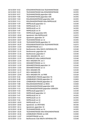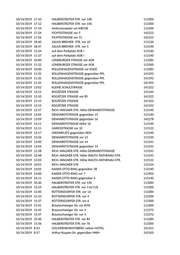 10/15/2019 8:52 KÜHLEWEINSTRASSE Ecke TELEMANNSTRASSE 112262 10/15/2019 8:55 TELEMANNSTRASSE Ecke KÜHLEWEINSTRASSE 141392 10/15/2019 8:57 TELEMANNSTRASSE gegenüber AOK 141392 10/15/2019 9:00 TELEMANNSTRASSE gegenüber AOK 141392 10/15/2019 9:03 ROLLENHAGENSTRASSE gegenüber AOK 141392 10/15/2019 9:11 ROLLENHAGENSTRASSE Höhe PAPPELALLEE 141392 10/15/2019 9:39 PAPPELALLEE gegenüber 11 113140 10/15/2019 9:40 PAPPELALLEE vor 15 141392 10/15/2019 9:45 PAPPELALLEE vor 22 141392 10/15/2019 9:49 PAPPELALLEE vor 24 141392 10/15/2019 9:53 PAPPELALLEE gegenüber KITA 141392 10/15/2019 10:04 Agnetenstr. Ecke PAPPELALLEE 112372 10/15/2019 10:09 Agnetenstr. gegenüber 10 112402 10/15/2019 10:07 TELEMANNSTRASSE vor 16 141392 10/15/2019 10:20 TELEMANNSTRASSE gegenüber 13 141392 10/15/2019 10:29 KÜHLEWEINSTRASSE Ecke TELEMANNSTRASSE 112272 10/15/2019 11:03 MOZARTSTRASSE vor 2 113140 10/15/2019 11:10 Beethovenstr. Höhe WALTH.-RATHENAU-STR. 113140 10/15/2019 11:15 Beethovenstr. gegenüber 6A 113140 10/15/2019 11:16 Beethovenstr. gegenüber 5 113140 10/15/2019 11:26 RICH.-WAGNER-STR. vor 4 113140 10/15/2019 11:37 HAYDNPLATZ Höhe GAREISSTRASSE 113140 10/15/2019 11:44 RICH.-WAGNER-STR. vor 3 113140 10/15/2019 11:51 DENHARDTSTRASSE vor 11 113140 10/15/2019 11:59 DENHARDTSTRASSE gegenüber 14 113140 10/15/2019 11:05 DENHARDTSTRASSE vor 15 113122 10/15/2019 12:15 RICH.-WAGNER-STR. 113140 10/15/2019 12:17 RICH.-WAGNER-STR. 113140 10/15/2019 12:04 RICH.-WAGNER-STR. vor PARK 113120 10/15/2019 8:46 LÜNEBURGER STRASSE gegenüber 9A 112403 10/15/2019 8:48 LÜNEBURGER STRASSE gegenüber 10 112403 10/15/2019 8:50 LÜNEBURGER STRASSE gegenüber 13 112403 10/15/2019 9:08 ROLLENHAGENSTRASSE vor REHA 113320 10/15/2019 9:09 ROLLENHAGENSTRASSE gegenüber AOK 141392 10/15/2019 9:13 ROLLENHAGENSTRASSE gegenüber GARAGEN 141392 10/15/2019 9:33 PAPPELALLEE gegenüber 6 113140 10/15/2019 9:45 PAPPELALLEE gegenüber 13 113140 10/15/2019 9:47 PAPPELALLEE vor 19 141392 10/15/2019 9:51 PAPPELALLEE vor 23 141392 10/15/2019 9:56 PAPPELALLEE vor 24 141392 10/15/2019 10:03 PAPPELALLEE vor 27 142252 10/15/2019 10:06 Agnetenstr. vor APOTHEKE 101106 10/15/2019 10:11 Agnetenstr. gegenüber 10 112402 10/15/2019 10:18 TELEMANNSTRASSE vor 10 141392 10/15/2019 10:26 TELEMANNSTRASSE Höhe KÜHLEWEINSTRASSE 141392 10/15/2019 10:36 LÜNEBURGER STRASSE vor AOK 113320 10/15/2019 11:07 MOZARTSTRASSE vor 6A 113140 10/15/2019 11:12 Beethovenstr. Ecke WALTH.-RATHENAU-STR. 113140