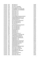 5/28/2019 7:53 FREILIGRATHSTRASSE gegenüber 4 141322 5/28/2019 8:00 FREILIGRATHSTRASSE vor 2 141312 5/28/2019 8:03 FREILIGRATHSTRASSE vor 1 113300 5/28/2019 8:04 FREILIGRATHSTRASSE vor 1 113300 5/28/2019 8:19 SCHILLERSTRASSE Ecke WIELANDSTRASSE 112402 5/28/2019 8:25 Albert-Vater-Str. vor 93A 112402 5/28/2019 8:29 WIELANDSTRASSE Ecke WIELANDSTRASSE 112372 5/28/2019 8:31 WIELANDSTRASSE gegenüber 15 112402 5/28/2019 8:33 WIELANDSTRASSE vor 10 112402 5/28/2019 8:39 OLVENSTEDTER STRASSE Höhe 41 112402 5/28/2019 8:42 OLVENSTEDTER STRASSE vor 43 112402 5/28/2019 8:44 IMMERMANNSTRASSE vor 18 141322 5/28/2019 8:59 SCHOPENHAUERSTR. vor 22 112402 5/28/2019 9:06 SCHOPENHAUERSTR. Ecke TISMARSTRASSE 112062 5/28/2019 9:08 SCHOPENHAUERSTR. Ecke TISMARSTRASSE 112062 5/28/2019 10:36 HALBERSTÄDTER STR. vor 134 113300 5/28/2019 10:41 HALBERSTÄDTER STR. vor 128 113300 5/28/2019 10:43 HALBERSTÄDTER STR. vor 124 113300 5/28/2019 10:45 HALBERSTÄDTER STR. vor 122 113300 5/28/2019 10:01 ROTTERSDORFER STR. vor 1A 113281 5/28/2019 11:00 ROTTERSDORFER STR. gegenüber 10 113300 5/28/2019 11:04 HALBERSTÄDTER STR. vor 119 113300 5/28/2019 11:06 HEIDESTRASSE vor 3 113300 5/28/2019 11:12 HALBERSTÄDTER STR. vor 129 112402 5/28/2019 11:20 HALBERSTÄDTER STR. vor 151 113300 5/28/2019 11:21 HALBERSTÄDTER STR. vor 151 113300 5/28/2019 11:26 HALBERSTÄDTER STR. gegenüber 158 113300 5/28/2019 10:01 HALBERSTÄDTER STR. vor 159 113282 5/28/2019 11:35 HALBERSTÄDTER STR. vor 162 113300 5/28/2019 10:25 Ambrosiusplatz vor 4 141324 5/28/2019 11:47 auf dem Parkplatz Hakeborner Str. 113300 5/28/2019 11:49 auf dem Parkplatz Hakeborner Str. 113300 5/28/2019 11:51 auf dem Parkplatz Hakeborner Str. 113300 5/28/2019 13:45 auf dem Parkplatz Flora Park 142278 5/28/2019 13:47 auf dem Parkplatz Flora Park 142278 5/28/2019 13:48 auf dem Parkplatz Flora Park 142278 5/28/2019 13:49 auf dem Parkplatz Flora Park 142278 5/28/2019 7:22 FREIH.-VOM-STEIN-STR Höhe 21 112402 5/28/2019 7:27 WESTERNPLAN gegenüber 11 141322 5/28/2019 7:33 WESTERNPLAN vor 15 112402 5/28/2019 7:36 WESTERNPLAN vor 69 112402 5/28/2019 7:42 WESTERNPLAN gegenüber 25 112402 5/28/2019 7:50 HERDERSTRASSE vor 4 141322 5/28/2019 7:54 FREILIGRATHSTRASSE Ecke STOLZESTRASSE 141322 5/28/2019 7:55 FREILIGRATHSTRASSE gegenüber 4 141322 5/28/2019 8:03 FREILIGRATHSTRASSE gegenüber 2 113300 5/28/2019 8:00 STOLZESTRASSE Ecke FREILIGRATHSTRASSE 141312 5/28/2019 8:15 EBENDORFER CH. Ecke Albert-Vater-Str. 112402