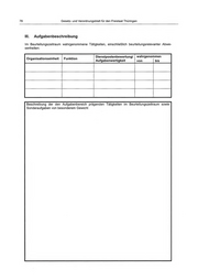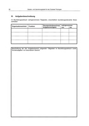 78 Gesetz- und Verordnungsblatt für den Freistaat Thüringen III. Aufgabenbeschreibung Im Beurteilungszeitraum wahrgenommene Tätigkeiten, einschließlich beurteilungsrelevanter Abwe- senheiten: Dienstpostenbewertung/ wahrgenommen Organisationseinheit Funktion Aufgabenwertigkeit von bis Beschreibung der den Aufgabenbereich prägenden Tätigkeiten im Beurteilungszeitraum sowie Sonderaufgaben von besonderem Gewicht