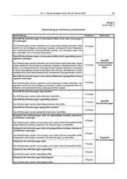 Nr. 2 - Tag der Ausgabe: Erfurt, den 28. Februar 2020 85 Anlage 5 (zu § 9 Satz 2) Beschreibung der Punktwerte und Notenstufen Beschreibung Punktwert Notenstufe Übertrifft die Anforderungen in besonderem Maße durch stets herausragen- de Leistungen Die Anforderungen werden verlässlich und in besonderem Maße übertroffen. Stets 15 Punkte werden bei der Erledigung schwieriger Aufgaben außergewöhnliche Fähigkeiten und außergewöhnliches Leistungsverhalten gezeigt. Die Leistungen liegen über den Leistungen, die 14 Punkten entsprechen. Übertrifft die Anforderungen in besonderem Maße durch regelmäßig heraus- ragende Leistungen übertrifft Die Anforderungen werden verlässlich und in besonderem Maße übertroffen. Regel- die Anforderungen mäßig werden bei der Erledigung schwieriger Aufgaben außergewöhnliche Fähig- 14 Punkte in besonderem keiten und außergewöhnliches Leistungsverhalten gezeigt. Besondere Leistungen Maße in einem Spezialgebiet reichen für sich allein noch nicht aus. Bei Beamten in Vorge- setztenfunktion setzt diese Bewertung ein vorbildliches Führungsverhalten voraus. Übertrifft die Anforderungen in besonderem Maße durch gelegentlich heraus- ragende Leistungen Die Anforderungen werden verlässlich und in besonderem Maße übertroffen. Ge- 13 Punkte legentlich werden bei der Erledigung schwieriger Aufgaben außergewöhnliche Fä- higkeiten und außergewöhnliches Leistungsverhalten gezeigt. , Übertrifft die Anforderungen stets deutlich 12 Punkte Die Anforderungen werden stets erkennbar übertroffen. Übertrifft die Anforderungen regelmäßig deutlich übertrifft 11 Punkte Die Anforderungen werden regelmäßig erkennbar übertroffen. die Anforderungen Übertrifft die Anforderungen gelegentlich deutlich 10 Punkte Die Anforderungen werden gelegentlich erkennbar übertroffen. Entspricht den Anforderungen stets mit regelmäßigen Ansätzen überdurch- schnittlicher Leistungen 9 Punkte Die Anforderungen werden voll und ganz und in jeder Hinsicht einwandfrei erfüllt. Regelmäßig sind Ansätze vorhanden, die Anforderungen zu übertreffen. Entspricht den Anforderungen stets mit gelegentlichen Ansätzen überdurch- schnittlicher Leistungen 8 Punkte Die Anforderungen werden voll und ganz und in jeder Hinsicht einwandfrei erfüllt. Gelegentlich sind Ansätze vorhanden, die Anforderungen zu übertreffen. entspricht den Anforderungen Entspricht den Anforderungen stets 7 Punkte Die Anforderungen werden voll und ganz und in jeder Hinsicht einwandfrei erfüllt. Entspricht den Anforderungen regelmäßig 6 Punkte Die Anforderungen werden regelmäßig erfüllt. Entspricht den Anforderungen überwiegend 5 Punkte Die Anforderungen werden überwiegend erfüllt.