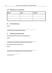 76 Gesetz- und Verordnungsblatt für den Freistaat Thüringen VIII. Mitwirkung von Vorgesetzten Datum Name Funktion IX. Schlusszeichnung Datum: Unterschrift der Beurteilerin/des Beurteilers* X. Eröffnung und Besprechung Eine Abschrift der Beurteilung wurde ausgehändigt am: Datum: Unterschrift der beurteilten Beamtin/des beurteilten Beamten Die Beurteilung wurde besprochen am: Datum: Unterschrift der beurteilten Beamtin/des beurteilten Beamten Nichtzutreffendes streichen.