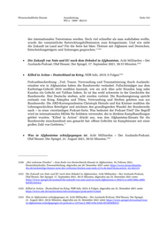 Wissenschaftliche Dienste Ausarbeitung Seite 352 WD 2 - 3000 - 062/21 des internationalen Terrorismus werden. Doch viel schneller als man wahrhaben wollte, wurde die vermeintliche Entwicklungshilfemission zum Kriegseinsatz. Und wie sieht die Zukunft im Land aus? Für die Serie hat Marc Thörner mit Afghanen und Deutschen, 1330 Entscheidungsträgern und Zeitzeugen gesprochen.“ Die Zukunft von Nato und EU nach dem Debakel in Afghanistan, Acht Milliarden – Der 1331 Auslands-Podcast, Olaf Heuser, Der Spiegel, 17. September 2021, 30:15 Minuten. Killed in Action – Deutschland im Krieg, NDR Info, 2019, 6 Folgen 1332 Podcastbeschreibung: „Tod, Trauer, Verwundung und Traumatisierung durch Auslands- einsätze wie in Afghanistan haben die Bundeswehr verändert. Fallschirmjäger aus dem Karfreitags-Gefecht 2010 erzählen hautnah, wie sie sich über acht Stunden lang nahe Kundus ein Gefecht mit Taliban liefern. Es ist das wohl schwerste in der Geschichte der Bundeswehr. Drei Deutsche sterben, acht werden verletzt. Die Bundesregierung spricht erstmals von Krieg. Kämpfen und Töten, Verwundung und Sterben gehören nun zur Bundeswehr. Die ARD-Korrespondenten Christoph Heinzle und Kai Küstner erzählen die Lebensgeschichten Beteiligter und zeichnen den grundlegenden Wandel der Bundeswehr nach – in einer vierstündigen Podcast-Serie. Was bedeutet der Podcast-Titel? Der Begriff wird im internationalen Militär für Soldaten verwendet, die in direkten Kampfhandlungen getötet wurden. "Killed in Action" drückt aus, was den Afghanistan-Einsatz für die Bundeswehr einschneidend neu gemacht hat: offene Gefechte im Kampfeinsatz mit einer großen Zahl von Getöteten.“ Was in Afghanistan schiefgegangen ist, Acht Milliarden – Der Auslands-Podcast, 1333 Olaf Heuser, Der Spiegel, 21. August 2021, 50:52 Minuten. 1330 „Der verlorene Frieden“ – Zum Ende von Deutschlands Einsatz in Afghanistan, 10. Februar 2021, Deutschlandradio, Pressemitteilung, abgerufen am 28. Dezember 2021 unter https://www.deutschlandra- dio.de/sechsteilige-feature-serie-der-verlorene-frieden-zum-ende.2174.de.html?dram:article_id=492319 1331 Die Zukunft von Nato und EU nach dem Debakel in Afghanistan, Acht Milliarden – Der Auslands-Podcast, Olaf Heuser, Der Spiegel, 17. September 2021, 30:15 Minuten, abgerufen am 25. Dezember 2021 unter https://www.spiegel.de/ausland/die-zukunft-von-nato-und-eu-nach-afghanistan-a-364e7cce-ef4d-486a-a060- 8a54b1de54ca 1332 Killed in Action - Deutschland im Krieg, NDR Info, 2019, 6 Folgen, abgerufen am 25. Dezember 2021 unter https://www.ndr.de/nachrichten/info/sendungen/podcast4574.html 1333 Was in Afghanistan schiefgegangen ist, Acht Milliarden – Der Auslands-Podcast, Olaf Heuser, Der Spiegel, 21. August 2021, 50:52 Minuten, abgerufen am 25. Dezember 2021 unter https://www.spiegel.de/ausland/was- in-afghanistan-schiefgegangen-ist-podcast-a-1257aac2-306f-41be-b3eb-8f1d4940b615