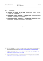 Wissenschaftliche Dienste Ausarbeitung Seite 353 WD 2 - 3000 - 062/21 10.4.2. Video-Beiträge Afghanistan: Die Taliban an der Macht, Michael Lüders, Logbuch, YouTube, 1334 18. August 2021, 43:24 Minuten. Bilanzdebatte „20 Jahre Afghanistan“ – Vernetzter Ansatz, Bundesministerium der 1335 Verteidigung, 11. Oktober 2021, 1:23:27 Stunden. Bilanzdebatte „20 Jahre Afghanistan“ – Wirkung auf die Bundeswehr, Bundes- 1336 ministerium der Verteidigung, 11. Oktober 2021, 1:52:32 Stunden. *** 1334 Afghanistan: Die Taliban an der Macht, Logbuch, Michael Lüders, YouTube, 18. August 2021, 43:24 Minuten, abgerufen am 25. Dezember 2021 unter https://michael-lueders.de/afghanistan-die-taliban-an-der-macht/ 1335 Bilanzdebatte „20 Jahre Afghanistan“ – Vernetzter Ansatz, Bundesministerium der Verteidigung, 11. Oktober 2021, 1:23:27 Stunden, abgerufen am 30. Dezember 2021 unter https://www.bmvg.de/de/media- thek/bilanzdebatte-afghanistan-vernetzter-ansatz-5227298 1336 Bilanzdebatte „20 Jahre Afghanistan“ – Wirkung auf die Bundeswehr, Bundesministerium der Verteidigung, 11. Oktober 2021, 1:52:32 Stunden, abgerufen am 30. Dezember 2021 unter https://www.bmvg.de/de/media- thek/bilanzdebatte-afghanistan-wirkung-bundeswehr-5227294