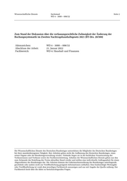Wissenschaftliche Dienste Sachstand Seite 2 WD 4 - 3000 – 006/22 Zum Stand der Diskussion über die verfassungsrechtliche Zulässigkeit der Änderung der Buchungssystematik im Zweiten Nachtragshaushaltsgesetz 2021 (BT-Drs. 20/300) Aktenzeichen: WD 4 - 3000 – 006/22 Abschluss der Arbeit: 21. Januar 2022 Fachbereich: WD 4: Haushalt und Finanzen Die Wissenschaftlichen Dienste des Deutschen Bundestages unterstützen die Mitglieder des Deutschen Bundestages bei ihrer mandatsbezogenen Tätigkeit. Ihre Arbeiten geben nicht die Auffassung des Deutschen Bundestages, eines seiner Organe oder der Bundestagsverwaltung wieder. Vielmehr liegen sie in der fachlichen Verantwortung der Verfasserinnen und Verfasser sowie der Fachbereichsleitung. Arbeiten der Wissenschaftlichen Dienste geben nur den zum Zeitpunkt der Erstellung des Textes aktuellen Stand wieder und stellen eine individuelle Auftragsarbeit für einen Abgeordneten des Bundestages dar. Die Arbeiten können der Geheimschutzordnung des Bundestages unterliegende, geschützte oder andere nicht zur Veröffentlichung geeignete Informationen enthalten. Eine beabsichtigte Weitergabe oder Veröffentlichung ist vorab dem jeweiligen Fachbereich anzuzeigen und nur mit Angabe der Quelle zulässig. Der Fachbereich berät über die dabei zu berücksichtigenden Fragen.