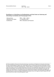 Wissenschaftliche Dienste Sachstand Seite 2 WD 4 - 3000 - 100/21 Einzelfragen zur Abwicklung von Kreditinstituten nach dem Gesetz zur Sanierung und Abwicklung von Instituten und Finanzgruppen (SAG) Aktenzeichen: WD 4 - 3000 - 100/21 Abschluss der Arbeit: 17. Dezember 2021 Fachbereich: WD 4: Haushalt und Finanzen Die Wissenschaftlichen Dienste des Deutschen Bundestages unterstützen die Mitglieder des Deutschen Bundestages bei ihrer mandatsbezogenen Tätigkeit. Ihre Arbeiten geben nicht die Auffassung des Deutschen Bundestages, eines sei- ner Organe oder der Bundestagsverwaltung wieder. Vielmehr liegen sie in der fachlichen Verantwortung der Verfasse- rinnen und Verfasser sowie der Fachbereichsleitung. Arbeiten der Wissenschaftlichen Dienste geben nur den zum Zeit- punkt der Erstellung des Textes aktuellen Stand wieder und stellen eine individuelle Auftragsarbeit für einen Abge- ordneten des Bundestages dar. Die Arbeiten können der Geheimschutzordnung des Bundestages unterliegende, ge- schützte oder andere nicht zur Veröffentlichung geeignete Informationen enthalten. Eine beabsichtigte Weitergabe oder Veröffentlichung ist vorab dem jeweiligen Fachbereich anzuzeigen und nur mit Angabe der Quelle zulässig. Der Fach- bereich berät über die dabei zu berücksichtigenden Fragen.