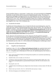Wissenschaftliche Dienste Sachstand Seite 10 WD 8 - 3000 - 086/21 20 diesem bestellten Dritten zu unterwerfen. Artikel 6 Abs. 3 GG setzt hinsichtlich der Trennung 21 des Kindes von der Familie zeitlich eine gewisse Mindestintensität voraus. Bei einem ver- pflichtenden halbtägigen Kindergartenbesuch mit Wahlmöglichkeit der Eltern hinsichtlich des Trägers handelt es sich nach Auffassung der juristischen Literatur nicht um eine Trennung im 22 Sinne des Art. 6 Abs. 3 GG. Mit diesen Erwägungen dürfte auch in anderen verpflichtenden Fördermaßnahmen zur Verbesserung sprachlicher oder sozialer Kompetenzen im Vorschulalter kein Eingriff in Art. 6 Abs. 3 GG zu erkennen sein. 3.3. Grundrechte der Kinder Verpflichtende Fördermaßnahmen etwa in Gestalt des Besuchs eines Kindergartens, einer Vor- schule oder einer anderen Fördereinrichtung führen dazu, dass die Kinder - bzw. ihre Eltern als gesetzliche Vertreter - nicht mehr frei darüber entscheiden können, wie und wo sie den Tag ver- 23 bringen. Auf Seiten der Kinder sind dadurch das allgemeine Persönlichkeitsrecht und das Auf- 24 fanggrundrecht der allgemeinen Handlungsfreiheit tangiert. Nach Auffassung des BVerfG soll zudem der elterlichen Pflicht aus Art. 6 Abs. 2 S. 1 GG auch ein Grundrecht des Kindes auf 25 Pflege und Erziehung durch seine Eltern korrespondieren. Da das allgemeine Persönlichkeitsrecht und die allgemeine Handlungsfreiheit gegenüber Art. 6 Abs. 2 S. 1 GG leichter einschränkbar sind, das Kindesgrundrecht aus Art. 6 Abs. 2 S. 1 GG in Akzessorietät zum Elternrecht und zur Elternpflicht steht und dem Kindeswillen im Verhält- nis zu seinen Eltern im Vorschulalter regelmäßig ein geringeres Gewicht zukommen dürfte, soll 26 das Elternrecht aus Art. 6 Abs. 2 S. 1 GG im Zentrum der nachfolgenden Ausführungen stehen. 3.4. Elternrecht und Elternverantwortung 3.4.1. Eingriff in den Schutzbereich Gemäß Art. 6 Abs. 2 S. 1 GG sind Pflege und Erziehung der Kinder das natürliche Recht der El- tern und die zuvörderst ihnen obliegende Pflicht. Zum Erziehungsrecht der Eltern aus Art. 6 Abs. 2 S. 1 GG gehört nach Auffassung des BVerfG auch, die Sprachkompetenz ihrer Kinder zu 20 Bader, Verfassungsrechtliche Probleme der Kindergartenbesuchspflicht und vorschulische Sprachförderung, NVwZ 2007, 537 (538). 21 BeckOK GG/Uhle, 48. Ed. 15.8.2021, Art. 6 GG, Rn. 67. 22 Guckelberger, Verfassungsrechtliche Probleme einer allgemeinen Kindergartenpflicht, RdJB 1/2012, 5 (16). Beaucamp, Die Kindergartenpflicht aus grundrechtlicher Perspektive, LKV 2014, 344 (345). Bader (Fn. 20), S. 538. 23 Beaucamp (Fn. 22), S. 345. 24 Ausführlich Reich, Die Einführung eines obligatorischen letzten Kita-Jahres in Sachsen-Anhalt, LKV 2008, 443 (445 f.). 25 BVerfG, Urteil vom 19.2.2013, 1 BvL 1/11, 1 BvR 3247/09, zitiert nach juris - Leitsatz. 26 Mit diesen Erwägungen auch Guckelberger (Fn. 22), S. 10.