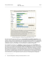 Wissenschaftliche Dienste Sachstand Seite 7 WD 8 - 3000 - 086/21 Nationaler Bildungsbericht - Bildung in Deutschland 2020 (Fn. 4), S. 99. Der Nationale Bildungsbericht 2020 benennt unterschiedliche Sprachfördermaßnahmen in den Ländern, welche von einer Dokumentation der individuellen Entwicklungsverläufe von Kindern und einer entsprechenden Unterstützung, über freiwillige Förderkurse bis hin zu verpflichtenden 14 Maßnahmen reichen. Nachfolgend wird die verpflichtende Ausgestaltung von Sprachförder- maßnahmen anhand der Rechtslage in drei Bundesländern exemplarisch dargestellt. Eine Verpflichtung besteht etwa in Hamburg in Gestalt des Besuchs einer Vorschulklasse und der Teilnahme an zusätzlichen schulischen Sprachfördermaßnahmen für Kinder, deren Sprach- kenntnisse voraussichtlich nicht ausreichen werden, um erfolgreich am Unterricht teilzunehmen. Die vorsätzliche Veranlassung, den Bestimmungen über die verbindliche Teilnahme an Sprach- förderung zuwiderzuhandeln, ist eine Ordnungswidrigkeit und kann mit einer Geldbuße geahn- det werden (§ 113 Hamburgisches Schulgesetz). Wer ein Kind der besonderen Sprachförderung dauernd oder wiederholt entzieht, kann mit einer Freiheitsstrafe bis zu sechs Monaten oder mit einer Geldstrafe bis zu 180 Tagessätzen bestraft werden (§ 114 Hamburgisches Schulgesetz). 14 Nationaler Bildungsbericht - Bildung in Deutschland 2020 (Fn. 4), S. 98 f.