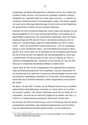 22 Da auch für Leitungspositionen das Besserstellungsverbot gilt, 25 muss hier auf eine vergleichende normative Dienstpostenbewertung zurückgegriffen werden. Im Gegensatz zu den Grund- und Regelämtern der Besoldungsordnung nimmt der Gesetzgeber die Bewertung und Einstufung der Führungsfunktionen in der Bundesverwaltung unmittelbar selbst vor, indem er die Leitungsämter in der Bundesbesoldungsordnung (BBesO) B des Bundesbesoldungsgesetzes einzeln ausbringt. Die Ämtereinstufung der BBesO B orientiert sich dabei grundsätzlich an Organisationsstrukturen und -formen, wie sie sich aus den Aufgabenstel- lungen (Vollzugs- oder Leitungsaufgaben) sowie aus der Gliederung in Zen- tral-, Mittel- oder Ortsbehörden über Jahrzehnte entwickelt haben. Daneben ist für die besoldungsrechtliche Zuordnung die Anzahl der Mitarbeiterinnen und Mitarbeiter im gehobenen und höheren Dienst ein wichtiger Anhaltspunkt. Im Einzelnen sind für die Einstufung der Ämter der Leitungsebene in der Bundes- verwaltung in der BBesO B insbesondere folgende Kriterien als maßgeblich an- erkannt: 26 - Personalstärke und -struktur (Anteil h. D., g. D.) der Behörde, - Zahl der nachgeordneten Bediensteten bzw. der zu betreuenden Personen (z. B. Versichertenzahl), - zu bewirtschaftendes Haushaltsvolumen, - wahrzunehmende Aufgaben (und deren politische Bedeutung), - Umfang und Ausmaß der Verantwortung, - Qualifikationsanforderungen an den Dienstposteninhaber und - allgemeine Bedeutung der Behörde. Im Mittelpunkt des über Jahrzehnte gewachsenen Bewertungsrasters steht auch die politische Bewertung der konkreten Aufgaben- und Verantwortungs- stellung, die der Gesetzgeber mit der Ämtereinstufung zum Ausdruck bringt. Insofern halten wir den Vorschlag der Stiftungen, eine unterschiedliche Be- handlung „großer“ und „kleiner“ Stiftungen von vornherein auszuschließen, für problematisch. Er lässt außer Acht, dass zwischen dem BMI und den politi- schen Stiftungen Einvernehmen darüber bestand, dass bei außertariflichen 25 So auch das Grundsatzpapier. 26 Vgl. Informationen des BMI vom 8. Dezember 2008, Referat D 3 Besoldungsrecht.
