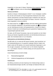 27 außertariflich Beschäftigten ergäbe sich hieraus im Ergebnis kein Mehraufwand bei der Verwendungsnachweisprüfung. Eine stichprobenweise Prüfung der Per- sonalausgaben in ausgewählten Einzelfällen bleibe möglich. Eine Verrechnung von monetären und nicht monetären Leistungen solle nicht erfolgen. Die Praxis der Gesamtbetrachtung des Jahresentgelts pro Mitarbeiter beziehe sich aus- schließlich auf monetäre Leistungen. Abschließende Würdigung Es besteht Konsens in der Fachliteratur, dass anhand der konkreten Leistung oder Zahlung zu prüfen ist, ob ein Verstoß gegen das Besserstellungsverbot vorliegt. Zweifelsfrei handelt es sich bei den gewährten Gratifikationen um außertarifliche Leistungen. Rechtliche Bedenken ergeben sich insofern, dass gemäß Nr. 1.3 der ANBest-I sonstige über- oder außertarifliche Leistungen aber nicht gewährt werden dürfen. Insofern können „Zusatzleistungen“ nicht mit „Minderzahlungen“ verrechnet werden. Darüber hinaus würden mit dieser Praxis Präzedenzfälle geschaffen. Entgegen der Auffassung des BMI sehen wir auch einen Mehraufwand beim Verwendungsnachweis und der Verwendungsnachweisprüfung, soweit an die- ser Praxis festgehalten wird. Dem Verwendungsnachweis müsste eine Ver- gleichsberechnung der betroffenen Fälle beigefügt werden, in der das für ver- gleichbare Bundesbeschäftigte zu gewährende Entgelt dem tatsächlich gezahl- ten Gesamtjahresentgelt gegenüber gestellt wird. Diese Aufstellung wäre dann von der Bewilligungsbehörde aktenkundig zu prüfen. Mit der Maßgabe, dass das BVA angehalten wird, gezielt einzelne Entgeltbe- standteile im Hinblick auf das Besserstellungsverbot zu prüfen, schließen wir den Punkt ab und behalten uns insofern eine Kontrollprüfung vor. Ausnahmen von der Arbeitszeiterfassung Feststellungen Die FNF hat eine Gesamtbetriebsvereinbarung „Elektronische Zeiterfassung“ mit dem Gesamtbetriebsrat der Stiftung abgeschlossen, die am 31. März 2014 in Kraft trat. Grundsätzlich ist jeder/jede Beschäftigte verpflichtet, an der elek- tronischen Zeiterfassung teilzunehmen und Arbeitsbeginn und -ende sowie Pausenzeiten am Zeiterfassungsterminal festzuhalten. Ausgenommen hiervon sind gemäß § 1 Nummer 2 der Gesamtbetriebsvereinbarung die leitenden