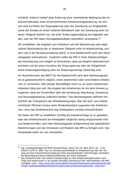 30 schränkt. Dadurch bedarf jede Änderung einer vereinbarten Bedingung des Ar- beitsverhältnisses einer einvernehmlichen Arbeitsvertragsänderung. So kön- nen eine Korrektur der Eingruppierung oder der Zuordnung zur Entgeltstufe sowie der Einsatz an einem anderen Betriebsort oder die Zuweisung einer an- deren Tätigkeit letztlich nur mit einer Änderungskündigung durchgesetzt wer- den, weil die FNF diese Vertragsbestandteile verbindlich vereinbarte. 35 Wir empfahlen, die Angaben zum Arbeitsort und der Bezeichnung oder allge- meinen Beschreibung der zu leistenden Tätigkeit nicht im Arbeitsvertrag, son- dern wie in der Bundesverwaltung üblich, in eine Niederschrift nach dem Nach- weisgesetz aufzunehmen. Zusätzlich sollte die FNF in ihren Arbeitsverträgen die Vereinbarung zum Entgelt so formulieren, dass sie lediglich deklaratorisch erscheint und bei einer Korrektur der Eingruppierung oder der Entgeltstufe keine Änderungskündigung oder ein Änderungsvertrag notwendig wird. Im Musterformular des BMI 36 für die Niederschrift nach dem Nachweisgesetz ist es gesetzeskonform möglich, einen bestimmten oder verschiedene Arbeits- orte zu vermerken, falls die/der Beschäftigte nicht nur an einem bestimmten Arbeitsort tätig sein soll. Die Angabe des Arbeitsortes ist mit dem Hinweis zu ergänzen, dass die Vorschriften über die Versetzung, Abordnung, Zuweisung und Personalgestellung unberührt bleiben. Das Nachweisgesetz definiert hin- sichtlich der Transparenz der Arbeitsbedingungen über die tarif- und arbeits- rechtlichen Pflichten hinaus einen Mindeststandard zugunsten der Arbeitneh- mer, ohne das Direktionsrecht des Arbeitgebers unnötig einzuschränken. Wir baten der FNF zu empfehlen, künftig die Arbeitsverträge so zu gestalten, dass das Direktionsrecht als Arbeitgeber möglichst wenig eingeschränkt wird und Niederschriften nach dem Nachweisgesetz entsprechend den gesetzlichen Bestimmungen und den Hinweisen und Mustern des BMI zu fertigen sind. Das Veranlasste baten wir uns mitzuteilen. 35 Vgl. Landesarbeitsgericht Berlin-Brandenburg, Urteil vom 24. April 2015, Gz.: 6 Sa 2360/14 (ZTR S. 589): Nur ein Versetzungsvorbehalt im Arbeitsvertrag oder der Ver- weis auf eine entsprechende Regelung eines anzuwendenden Tarifvertrages verhindert die Beschränkung eines Arbeitsverhältnisses auf einen Arbeitsort. 36 Das Musterformular und weitere Erläuterungen zu den Arbeitsvertragsmustern nach TVöD sind elektronisch in der jeweils aktuellen Fassung auf den Internetseiten des BMI verfügbar unter: http://www.bmi.bund.de/DE/Themen/ModerneVerwaltung/Dienstrecht/ TVoeD-Tarifbeschaeftigte/Arbeitsvertragsmuster/arbeitsvertragsmuster node.html.