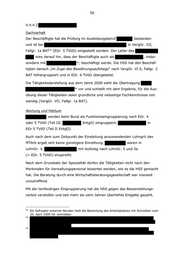 56 4.4.4.2 Sachverhalt Der Beschäftigte hat die Prüfung im Ausbildungsberuf bestanden und ist bei in VergGr. VII, Fallgr. 1a BAT 44 (EGr. 5 TVöD) eingestellt worden. Der Leiter des wies darauf hin, dass der Beschäftigte auch als , insbe- sondere mit 45 , beschäftigt werde. Die HSS hat den Beschäf- tigten danach „im Zuge des Bewährungsaufstiegs“ nach VergGr. VI b, Fallgr. 2 BAT höhergruppiert und in EGr. 6 TVöD übergeleitet. Die Tätigkeitsdarstellung aus dem Jahre 2008 sieht die Übertragung 46 vor und schließt mit dem Ergebnis, für die Aus- übung dieser Tätigkeiten seien gründliche und vielseitige Fachkenntnisse not- wendig (VergGr. VII, Fallgr. 1a BAT). Wertung und Petitum werden beim Bund als Funktionseingruppierung nach EGr. 4 oder 5 TVöD (Teil III, EntgO) eingruppiert, in EGr 5 TVöD (Teil II EntgO). Auch nach dem zum Zeitpunkt der Einstellung anzuwendenden LohngrV des MTArb ergab sich keine günstigere Einreihung. waren in LohnGr. 4, mit Aufstieg nach LohnGr. 5 und 5a (= EGr. 5 TVöD) eingereiht. Nach dem Grundsatz der Spezialität dürfen die Tätigkeiten nicht nach den Merkmalen für Verwaltungspersonal bewertet werden, wie es die HSS gemacht hat. Die Beratung durch eine Wirtschaftsberatungsgesellschaft war insoweit unzutreffend. Mit der tarifwidrigen Eingruppierung hat die HSS gegen das Besserstellungs- verbot verstoßen und seit mehr als zehn Jahren überhöhte Entgelte gezahlt. 44 Ein befragter externer Berater hielt die Bewertung des Arbeitsplatzes mit Schreiben vom 20. April 1995 für vertretbar. 45 46
