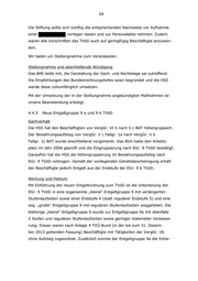 59 Die Stiftung sollte sich künftig die entsprechenden Nachweise vor Aufnahme einer vorlegen lassen und zur Personalakte nehmen. Zudem waren alle Vorschriften des TVöD auch auf geringfügig Beschäftigte anzuwen- den. Wir baten um Stellungnahme zum Veranlassten. Stellungnahme und abschließende Würdigung Das BMI teilte mit, die Darstellung der Sach- und Rechtslage sei zutreffend. Die Empfehlungen des Bundesrechnungshofes seien begründet und die HSS werde diese vollumfänglich umsetzen. Mit der Umsetzung der in der Stellungnahme angekündigten Maßnahmen ist unsere Beanstandung erledigt. 4.4.5 Neue Entgeltgruppe 9 a und 9 b TVöD Sachverhalt Die HSS hat den Beschäftigten von VergGr. VI b nach V c BAT höhergruppiert. Der Bewährungsaufstieg von VergGr. V c Fallgr. 1a nach VergGr. V b Fallgr. 1c BAT wurde anschließend vorgemerkt. Das BVA hatte den Arbeits- platz im Jahr 2006 geprüft und die Eingruppierung nach EGr. 8 TVöD bestätigt. Daraufhin hat die HSS die Höhergruppierung im Bewährungsaufstieg nach EGr. 9 TVöD vollzogen. Gemäß der vorliegenden Gehaltsbescheinigung erhält der Beschäftigte jedoch Entgelt aus der Endstufe der EGr. 9 b TVöD. Wertung und Petitum Mit Einführung der neuen Entgeltordnung zum TVöD ist die Unterteilung der EGr. 9 TVöD in eine sogenannte „kleine“ Entgeltgruppe 9 mit verlängerten Stufenlaufzeiten sowie einer Endstufe 4 (statt regulärer Endstufe 5) und eine sog. „große“ Entgeltgruppe 9 mit regulären Stufenlaufzeiten weggefallen. Die bisherige „kleine“ Entgeltgruppe 9 wurde zur Entgeltgruppe 9a mit ebenfalls 5 Stufen und regulären Stufenlaufzeiten sowie geringer materieller Verbesse- rung. Dieser waren nach Anlage 4 TVÜ-Bund (in der bis zum 31. Dezem- ber 2013 geltenden Fassung) Beschäftigte mit Tätigkeiten der VergGr. Vb ohne Aufstieg zugeordnet. Zusätzlich konnte der Entgeltgruppe 9a die frühe-