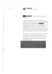 Seite 2 Herrn®®. der über diesen Brief informiert ist, wird Sie gerne noch mit weiteren Informationen versorgen und steht Ihnen und Ihrem Hause auch gerne zur Rückfragen zur Verfügung. Sie reichen ihn wie folgt; Germany Ich möchte Sie hiermit um eine wohlwollende Prüfung dieses Projektvorschlaees bitten. Eine Projektskizze habe ich beigefügt.