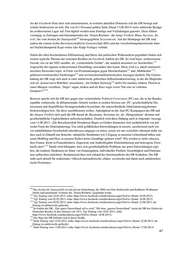 und Lehre notwendig […]. Der 8. Mai 1945 war kein Tag der Befreiung, sondern der Niederlage und Beset- 102 zung unseres Landes.“ Auch wenn die DR dieser ausbuchstabierten Perspektive nicht in Gänze zustimmen sollte, so ist die hier zitierte Passage aus dem Selbstverständnis zumindest kompatibel mit den Aussagen der NPD. Angesichts dessen, dass aus der DR gleich mehrere NPD-Mitglieder hervorgegangen sind, ist diese inhaltliche Nähe keine Überraschung. Der unkritische Umgang mit dem Nationalsozialismus zeigt sich auch an anderer Stelle im Selbstverständnis. Voller Stolz berichtet die DR darüber, dass „zahlreiche Burschenschafter auch im Zweiten Weltkrieg ihren 103 Mut [bewiesen hätten] und […] dafür mit höchsten Ehren ausgezeichnet“ wurden. Als Beispiel wird Eh- renfried Boege, ‚Bundesbruder‘ aus der Greifswalder Burschenschaft Rugia, angeführt. Boege war Oberbe- fehlshaber der 18. Armee der Wehrmacht und Träger des Ritterkreuzes des Eisernen Kreuzes mit Eichenlaub – eine Auszeichnung, die im Nationalsozialismus ein großes Ausmaß an Ansehen mit sich brachte und den Träger zum Helden stilisierte. Folgerichtig kommentiert die DR anerkennend die Aktion Deserteure sind keine Helden der Hamburger Burschenschaft Germania von Anfang Mai 2013, die sich gegen die Errichtung 104 eines Denkmals für Wehrmachtsdeserteure richtete. In der Rubrik ‚Burschenschaft‘ auf der Homepage der DR wird darüber hinaus unter ‚Erbe und Auftrag‘ verdeutlicht, in welcher Tradition die DR sich verortet. Nach dem Ersten Weltkrieg – in den „sämtliche wehrfähige Burschenschafter begeistert zogen“ – engagierten sich zahlreiche Burschenschafter während der Weimarer Zeit für den „Schutz des Deutschtums in den bedrohten Grenzlanden“ der „fortan oberste Priorität“ hatte. Hochmütig wird berichtet, dass viele Burschenschafter „im Landesinneren auf Freikorpsseite gegen 105 den kommunistischen Feind“ kämpften. Unerwähnt bleibt, dass Freikorps darauf abzielten, die Weimarer Republik mit Waffengewalt abzuschaffen und Vertreter der Arbeiterbewegung sowie jüdische Politiker er- mordeten. Dass sich die DR explizit in die Tradition der Freikorps stellt, wird auch an einem der ersten Pos- tings auf ihrer Facebook-Seite, die seit Oktober 2012 existiert, deutlich. Gezeigt wird eine historische Abbil- 106 dung, die Burschenschafter dazu auffordert, sich als studentische Freikorps zu betätigen (Abb. 19). Die Facebook-Seite veranschaulicht zudem, dass die DR dem poli- tischen Feind nach wie vor mit Hetze und Kampfansagen begegnet. Ein am 10.08.2013 geteilter Link führt zur Homepage Links- Enttarnt, die von Hans-Helmuth Knütter, einem Denker und Akteur der so genannten ‚Neuen Rechten‘, betrieben wird. Knütter, für den sich „Linksextremisten“ u.a. in Gewerkschaften und der evangeli- 107 schen Kirche tummeln , wird seit Jahren nicht müde zu behaup- ten, dass „die wirkliche Gefahr für die Verfassungsordnung der 108 Bundesrepublik Deutschland von der politischen Linken“ ausge- he. An anderer Stelle wird der Satz von Fußballprofi Mehmet 109 Scholl „Hängt die Grünen, solange es noch Bäume gibt“ zitiert. Während Scholl sich von seinem Ausspruch kritisch distanzierte, kann die Verwendung des Zitats durch die DR vor dem Hintergrund der Aggressivität dem politischen Opponenten gegenüber als Auf- Abb. 19: Aufruf zur Beteiligung von forderung zum Mord verstanden werden. Burschen in Freikorps von der Fa- cebook-Seite der Dresdensia Rugia. 102 Siehe: http://www.npd.de/html/1939/artikel/detail/1698/ (Stand: 15.08.2013). 103 Siehe: http://b-dresdensia-rugia.de/pages/dresdensia-rugia/selbstverstaendnis.php (Stand: 15.08.2013). 104 Vgl. Eintrag vom 04. und 06.05.2013; siehe: https://www.facebook.com/dresdensia.rugia?fref=ts (Stand: 16.08.2013). 105 Alle Zitate siehe: http://b-dresdensia-rugia.de/pages/dresdensia-rugia/selbstverstaendnis.php (Stand: 15.08.2013). 106 Vgl. Eintrag vom 30.10.2012; siehe: https://www.facebook.com/dresdensia.rugia?fref=ts (Stand: 16.08.2013). 107 Vgl. Speit, Andreas (2002): Ideologischer Brandstifter; siehe: http://www.taz.de/1/archiv/archiv- start/?dig=2002/10/22/a0256. 108 Siehe: http://www.links-enttarnt.net/?link=startseite (Stand: 15.08.2013). 109 Vgl. Eintrag vom 20.01.2013; siehe: https://www.facebook.com/dresdensia.rugia?fref=ts (Stand: 16.08.2013). 86
