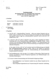FüsSI3 Bonn, 27.August 2004 Az 36-01 App.: 95 39 Fax: 1485 Ergebnisprotokoll des Impulsseminars zur Aktualisierung/ Neufassung der ZDv 66/2 Lebenskundlicher Unterricht vom 16. bis 18. August 2004 1. Ort/Zeit: Zentrum Innere Führung in Koblenz Beginn: 16.08.2004, 15:30 Uhr Ende: 18.08.2004, 12:00 Uhr 2. Teilnehmer: siehe Anlage. 3. Ergebnis: 1) Die ZDv 66/2 - Lebenskundlicher Unterricht - sollte zum jetzigen Zeitpunkt nicht ge- ändert werden. Im Rahmen der Weiterentwicklung der Konzeption der Inneren Führung muss geprüft werden, ob ggf. der „Lebenskundliche Unterricht“ (LKU) in die ZDv 10/1 aufgenommen wird. 2) a, Teile des „LKU alt“ sollen in Zukunft in der AGA, in allen Lehrgängen der Führer- ausbildung und in der Einsatzausbildung verpflichtend durchgeführt werden. Verant- wortlich ist der jeweilige Disziplinarvorgesetzte. Experten, z. B. Militärseelsorger sind themenbezogen hinzuzuziehen. Ziel ist Wissensvermittlung zur Steigerung der sozialen- ethischen Kompetenz. b, Der andere Teil des „LKU alt“ soll weiterhin durch die Militärseelsorger als freiwil- lige Arbeitsgemeinschaften angeboten werden. Dabei ist das Angebot an Seminaren bei den Arbeitsgemeinschaften durch die Zusammenfassung der durchzuführenden Stunden deutlich zu erweitern. 3) Die Durchführung des „LKU neu gem. 2.a“ ist stärker zu überwachen. Dabei kommt der besseren Koordination zwischen Disziplinarvorgesetzten und Militärseelsorgern eine besondere Bedeutung zu. 4) Es muss in diesem Zusammenhang eine Schwerpunktverlagerung erfolgen: - beim Militärpfarrer vom Unterricht verstärkt hin zum offenen Gespräch (ist be- reits Praxis), - beim Disziplinarvorgesetzten hin zur Verantwortung für Unterricht/ Ausbildung. Im Auftrag Bauer