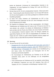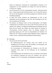 II. 7- gez. -2- Instituts der Bundeswehr „Evaluierung des Lebenskundlichen Unterrichts in der Truppenpraxis“ mit ersten Ergebnissen der Umfrage 2010 wurde dem BMVg am 10. Februar 2011 vorgelegt. Mit dem Erlass der ZDv 10/4 (zE) „Lebenskundlicher Unterricht — Selbstverantwortlich leben — Verantwortung für andere übernehmen können“ vom 20. Januar 2009 wurde der LKU für eine Erprobungsphase von drei Jahren grundlegend neu strukturiert und seine Durchführung festgelegt. Im Herbst 2010 wurden Teilnehmer und Teilnehmerinnen am LKU zu ihrer Zufriedenheit und ihren Erfahrungen mit dem LKU, ihren Erwartungen an den LKU und zur Akzeptanz des LKU befragt. Die Ergebnisse der Befragung werden wie folgt zusammengefasst: „Die befragten Teilnehmerinnen und Teilnehmer aam LKU waren zu über 70 Prozent mit dem LKU ‚sehr zufrieden’ oder zufrieden’. Sie schätzten die Militärseelsorger als Ethiklehrer hoch und haben nicht den Wunsch, dass Soldaten oder externe Experten als Dozenten im Lebenskundlichen Unterricht eingesetzt werden. Die Befragten empfinden die gegenwärtige Regelung des LKU nicht als Zwangsmaßnahme des Dienstherrn. Sie bringen dem LKU vielmehr ein großes sachlich begründetes Interesse entgegen und erwarten von ihm vor allem Hilfe für ihre persönliche Weiterentwicklung.“ Bewertung Die neue Form des LKU hat sich bewährt. - Wenngleich die ZDv_10/4 (zE) die Erteilung des LKU durch andere, auch externe Fachkräfte, erstmals ausdrücklich ermöglicht, sollten Pdie Militärseelsorgerinnen und Militär-seelsorger seHterjedenfalls-auek weiterhin mit der Durchführung des LKU betraut werden. Das Neutralitäts- und Toleranzgebot wird von den Dozentinnen und Dozenten eingehalten. - Die Vorerwartungen der Teilnehmerinnen und Teilnehmer an den LKU sind mehrheitlich ebenso positiv wie ihre Erfahrungen mit den durchgeführten Unterrichten. - Vielen Teilnehmerinnen und Teilnehmern am LKU war undeutlich, welche Haltung ihre militärischen Vorgesetzten zum neuen LKU einnehmen. Dazu sollte auf Tagungen, z.B. GV/A1-, Kommandeur- und Spießtagungen vorgetragen werden.