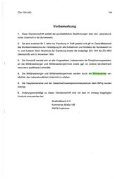 ZDv 10/4 (zE) 1-6 Vorbemerkung 1. Diese Dienstvorschrift enthält die grundsätzlichen Bestimmungen über den Lebenskund- lichen Unterricht in der Bundeswehr. 2. Sie wird zunächst für 3 Jahre zur Erprobung in Kraft gesetzt und gilt im Geschäftsbereich des Bundesministeriums der Verteidigung für alle Soldatinnen und Soldaten der Bundeswehr im In- und Ausland. Nach Abschluss der Erprobung ersetzt die endgültige ZDv 10/4 die ZDv 66/2 (Merkschrift) vom 5. November 1959. 3. Die Vorschrift wendet sich an alle Vorgesetzten, insbesondere die Disziplinarvorgesetzten, an die Militärseelsorger und Militärseelsorgerinnen sowie ggf. an andere berufsethisch besonders qualifizierte Lehrkräfte. 4. Die Militärseelsorger und Militärseelsorgerinnen werden durch die Kirchenämter ver- pflichtet, den Lebenskundlichen Unterricht zu erteilen. 5. Der Hauptpersonalrat und der Gesamtvertrauenspersonenausschuss beim BMVg wurden beteiligt. 6. Änderungsvorschläge zu dieser Dienstvorschrift sind mit dem im Anhang beigefügten Vordruck einzureichen bei: Streitkräfteamt Ill 5 Kommerner Straße 188 53879 Euskirchen