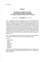 ZDv 10/4 (zE) Inh 1 Inhaltsverzeichnis Kapitel 1 Grundsätze, Aufgaben und Ziele des Lebenskundlichen Unterrichts im Zusammenhang mit der Inneren Führung ...... 101-109 l. Grundsätze ..........uesssssssessenenneennnnnnennsennnnnnsensnenensnsonenensnsnnnnenee 101-105 ll. Aufgaben und Ziele ..............................220ssmsnsnsnnnnenenennserennnnnnn 106-109 Kapitel 2 Organisation und Durchführung des Lebenskundlichen Unterrichts ................222044042220002 esse eenennenn 201-209 l. Organisation ..............s00422222220040n0snnnnnnnnnnnenenennnnnnnnnnnnnnnnannnnnnnennnn 201-204 ll. Durchführung ...........................24sosnnoooeneeesnennnnnnnonnennennnnnnnnnn onen 205-209 Kapitel 3 Aufgaben der Vorgesetzten ........................44400 seen 301-304 Anhang Anlage 1 Gestaltungsfelder der Inneren Führung und Lebenskundlicher Unterricht .........................0-422204004nnannnnnnenenenn 111-2 Anlage 2 Soldatischer Wertekanon .....ereeeeeeeeeeeeeeeeeeeeeeeeseenesneneensnssenennnnnnnenn 2/1-2 Anlage 3 Curriculum der Inhalte zum Erreichen ethischer Kompetenz ...... 3 Stichwortverzeichnis Änderungsvorschlag Änderungsnachweis