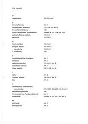 ZDv 10/4 (zE) A Aufgaben Ausbildung, -splan, -sabschnitt Ausland B Betreuung Bildung D Demokratie, demokratisch Dienst Dienstgestaltung Dienstbetrieb Dienstgradgruppen Dienstobliegenheiten Dienstplan, -änderungen Dienststellen Dienstzeit Disziplin, diszipliniert —- Selbstdisziplin Disziplinarvorgesetzte E Einsatzbelastung Erwachsenenbildung Erziehung Ethik, ethisch F fachlich befähigt Familie Freiheit, freiheitlich Frieden Friedensethik Führung Fürsotge, fürsorglich Stichwortverzeichnis 101, 106-109, 301-304 105, 205, 207, 304, Anl. 1 Vorbem. 2 Anl. 1 106, 203 102, 107, Anl. 2 102 f., 209, 301, Anl. 2, Anl. 3 Anl. 1 204 202 f. 302 207, 302 105 105 Anl. 2 108 Vorbem. 3, 207, 209, 302, 304 Anl. 3 208 105, 301 101-104, 106, 209, 301, Anl. 1, Anl. 3 Anl. 2 Anl. 3 102, 107, Anl. 2, Anl. 3 102, Anl. 2, Anl. 3 Anl. 3 105 Anl. 1, Anl. 2