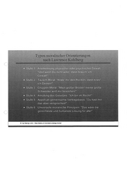 Universitätsstudierende im 1. Semester (nur Arzt-Dilemma) Zustimmung Land Germany (West) Austria Netherlands Poland Quelle Yugoslavia FORM-Projekt, SFB 23 Ablehnung Lind (1986). Cultural differences in moral Gute Tate A study of West and 8 university students. De- RAVEN KEITEN EIRET 2 k Pi 5 6 Moralische Orientierungen (Kohlberg) © by Georg Lind | http://www.uni-konstanz.de/ag-moral/