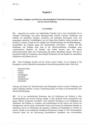 Vorbemerkung 1. Diese Dienstvorschrift enthält die grundsätzlichen Bestimmungen über den Lebenskundlichen Unterricht in der Bundeswehr. 2. Sie wird zunächst für 3 Jahre zur Erprobung in Kraft gesetzt und gilt im Geschäftsbereich des Bundesministeriums der Verteidigung für alle Soldatinnen und Soldaten der Bundeswehr im In- und Ausland. Nach Abschluss der Erprobung ersetzt die endgültige ZDv 10/4 die ZDv 66/2 (Merkschrift) vom 5. November 1959. 3. Die Vorschrift wendet sich an alle Vorgesetzten, insbesondere die Disziplinarvorgesetzten, an die Militärseelsorger und Militärseelsorgerinnen sowie ggf. an andere berufsethisch besonders qualifizierte Lehrkräfte. 4. Die Militärseelsorger und Militärseelsorgerinnen werden durch die Kirchenämter verpflichtet, den Lebenskundlichen Unterricht zu erteilen. 5. Der Hauptpersonalrat und der Gesamtvertrauenspersonenausschuss beim BMVg wurden beteiligt. 6. Änderungsvorschläge zu dieser Dienstvorschrift sind mit dem im Anhang beigefügten Vordruck einzureichen bei: Streitkräfteamt III 2 Kommerner Straße 188 53879 Euskirchen