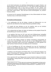 -5- wie die bloße Konfrontation mit christlichen Glaubensinhalten die negative Glaubens- und Bekenntnisfreiheit nicht verletzt (BVerwGE 107, 75, 82), führt die bloße Konfrontation mit einem Militärgeistlichen nicht zu einem Recht der Soldaten, die nicht „glauben“, dem Unterricht fern zu bleiben. Allerdings dürften die Militärseelsorger gerade nicht als Geistliche | tätig werden, sondern müssten — dann wohl auch in ihrem Erscheinungsbild - als „weltliche“ Dozenten auftreten. g) Inwieweit sich die genannten Einschränkungen mit dem Selbstverständnis der Kirchen vereinbaren lassen, ist nicht Sache des Staates. IM. Ergebnis und Konsequenzen: x 1. Ein verpflichtender LKU für alle Soldaten, verstanden als Ethikunterricht, ist in der Bundeswehr ohne Rücksicht auf das religiöse Bekenntnis grundsätzlich zulässig. 2. Es handelt sich dann allerdings um eine rein staatliche, nicht um eine kirchliche Veranstaltung und auch nicht um eine gemeinsame Angelegenheit. 3. Es ist alleing Sache des Staates, die Inhalte, die Methoden und das geeignete Personal für die Durchführung des Unterrichts auszuwählen. 4. Aus staatlicher Sicht kann der LKU (neu) auch durch Militärseelsorger durchgeführt werden. Militärseelsorger dürften dabei allerdings nicht im Rahmen ihres seelsorgerischen Auftrags als Geistliche einer bestimmten Konfession auftreten. 5. Der LKU neuer Prägung unterliegt als staatliche Veranstaltung uneingeschränkt der Aufsicht durch staatliche Stellen. Dies gilt auch für den durch Militärgeistliche erteilten Unterricht. Insbesondere besteht insoweit keine Unabhängigkeit der Kirche gegenüber dem Staat” und keine Freiheit der Kirchen, die Inhalte des LKU zu bestimmen. 6. Bei der Durchführung des LKU muss sichergestellt sein, dass die Veranstaltung im Hinblick auf das religiöse Bekenntnis neutral ist. Insbesondere darf keine „Beeinflussung“ hinsichtlich bestimmter Glaubensinhalte erfolgen. 7. Inhaltlich ist eine Bezugnahme auf christliche Werte, wie sie insbesondere Eingang in die (Grund-) Werteordnung der Verfassung gefunden haben (Stichwort prägender Kultur- und Bildungsfaktor), selbstverständlich möglich. 8. Da es sich beim LKU neuer Prägung nicht um einen Unterricht im Rahmen des kirchlich- seelsorgeriächen Auftrags handelt bzw. nicht handeln darf, steht er auch für andere geeignete Lehrkräfte offen. ? Aus Art. 140 GG i.V.m. Art. 137 WRV ergibt sich die Anerkennung der Eigenständigkeit der Kirchen und die ausdrückliche Gewährleistung der Freiheit kirchlichen Wirkens (v. Campenhausen in: v. Mangoldt/Klein/Stark, GG, Art 137 WRV Rın. 1); dies gilt auch im Rahmen der Anstaltsseelsorge (vgl. v. Campenhausen, a.a.O., Art. 141 WRV Rn. 5 und 16)