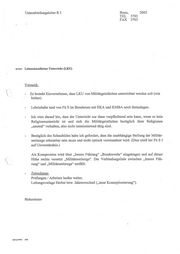 Unterabteilungsleiter RI Bonn, 2005 TEL 5703 FAX 5705 Berrerr Lebenskundlicher Unterricht (LKU) Vermerk: - Es besteht Einvernehmen, dass LKU von Militärgeistlichen unterrichtet werden soll (wie bisher). - Lehrinhalte sind von Fü S im Benehmen mit EKA und KMBA noch festzulegen. - Ich wies darauf hin, dass der Unterricht nur dann verpflichtend sein kann, wenn es kein Religionsunterricht ist und sich die Militärgeistlichen bezüglich ihrer Religionen „neutral“ verhalten, also nicht missionierend tätig sind. - Bezüglich des Schaubildes habe ich gefordert, dass die unabhängige Stellung der Militär- seelsorge erkennbar sein muss und nicht optisch vereinnahmt wird. (Dies stieß bei FüSI auf Unverständnis.) Als Kompromiss wird über „Innere Führung“ „Bundeswehr“ eingetragen und auf dieser Höhe rechts versetzt „Militärseelsorge“. Die Verbindungslinie zwischen „Innere Füh- rung“ und „Militärseelsorge“ entfällt. - Zeitschiene: Prüfungen / Arbeiten laufen weiter. Leitungsvorlage Herbst bzw. Jahreswechsel („neue Konzeptionierung‘“). Birkenheier AllgFsprWNBw 3400