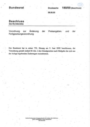 Bundesrat Drucksache 180/00 (Beschluss) 09.06.00 Beschluss des Bundesrates Verordnung zur Änderung der Preisangaben- und der Fertigpackungsverordnung Der Bundesrat hat in seiner 752. Sitzung am 9. Juni 2000 beschlossen, der Verordnung gemäß Aräkel 80 Abs. 2 des Grundgesetzes nach Maßgabe der sich aus der Anlage ergebenden Änderungen zuzustimmen. Vertrieb: Bundesanzeiger Verlagsgesellachatt mbH, Postfach 1320, 53003 Bonn Telefon; 0228/3820840, Telefax: 0228/3820844 l ISSN 0720-2946