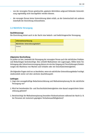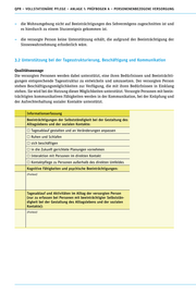 48 | 49 Plausibilitätskontrolle 1. Stehen die Angaben zur Selbstständigkeit der versorgten Person bei der Gestaltung des Alltagslebens und der sozialen Kontakte (Ergebniserfassung) in Einklang mit den Informatio- nen aus anderen Quellen? keine Auffälligkeiten festgestellt Auffälligkeiten festgestellt (bitte angeben) trifft nicht zu 2. Stehen die Angaben zu den kognitiven und kommunikativen Fähigkeiten der versorgten Person in Einklang mit den Informa-tionen aus anderen Quellen? keine Auffälligkeiten festgestellt Auffälligkeiten festgestellt (bitte angeben) trifft nicht zu Allgemeine Beschreibung Zu prüfen ist, ob für die versorgte Person eine individuelle Gestaltung des Tagesablaufs ermöglicht und gefördert wird, die ihren Bedürfnissen entspricht. Zu prüfen ist ferner, ob bei versorgten Personen, die kognitive oder psychische Beeinträchtigungen aufweisen, die Tagesstrukturierung zur Förderung von Orientierung und Wohlbefinden eingesetzt wird. Dabei ist auch zu prüfen, ob die versorgte Person bei der Auswahl und Durchführung bedürfnisgerechter Aktivitäten unter- stützt wird, ebenso bei der Kommunikation mit vertrauten Bezugspersonen, Freunden oder Bekannten. Leitfragen Die folgenden Fragen sind nur zu bearbeiten, wenn Bedarf an Unterstützung bei der Tagesstruk- turierung, Beschäftigung oder Kommunikation vorliegt. Anderenfalls weiter mit dem nächsten Qualitätsaspekt. 1. Sind die Interessen an Aktivitäten und Gewohnheiten der versorgten Person bekannt? 2. W urde mit der versorgten Person (oder ihren Bezugspersonen) eine individuelle Tagesstruk- turierung erarbeitet? 3. Orientieren sich pflegerische Versorgung und andere Hilfen an der individuell festgelegten Tagesstrukturierung und den Bedürfnissen der versorgten Person? 4. Erhält die versorgte Person Unterstützung dabei, bedürfnisgerechten Beschäftigungen im Lebensalltag nachzugehen?