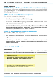 QPR – VOLLSTATIONÄRE PFLEGE – ANLAGE 1: PRÜFBOGEN A – PERSONENENBEZOGENE VERSORGUNG Hinweise zur Bewertung B) Auffälligkeiten, die keine Risiken oder negativen Folgen für die versorgte Person erwarten lassen Diese Bewertung trifft zu, wenn die Verhaltensweisen der versorgten Person nicht nachvollzieh- bar dokumentiert werden, das Verhalten der versorgten Person aber auch keinen nennenswerten Unterstützungsbedarf auslöst. C) Defizit mit Risiko negativer Folgen für die versorgte Person Diese Bewertung trifft zu, wenn beispielsweise – keine zutreffende Erfassung von Verhaltensweisen erfolgte. – eine Erfassung, aber keine Bewertung erfolgte, inwieweit die Verhaltensweisen für die ver- sorgte Person ein Problem darstellen. – keine Hinweise darauf vorliegen, dass versucht wurde, verhaltensrelevante Faktoren (z. B. umgebungsbedingte Überforderungen, Tagesstruktur, nächtliche Störungen, biografische Bezüge, Änderung der Medikation, Trauer etc.) zu identifizieren. D) Defizit mit eingetretenen negativen Folgen für die versorgte Person Diese Bewertung trifft zu, wenn beispielsweise – keine Unterstützung erfolgt, die explizit auf die Verhaltensweisen der versorgten Person ausgerichtet ist. – die Einrichtung ausschließlich mit aktivitätsbegrenzenden Maßnahmen reagiert, obwohl andere Hilfen bei der versorgten Person noch nicht zur Anwendung kamen und ihr Nutzen noch nicht bewertet wurde. 4.4 Freiheitsentziehende Maßnahmen Qualitätsaussage Der Einsatz von Gurtfixierungen, Bettseitenteilen und anderen Fixierungen wird soweit wie möglich vermieden; im Falle eines Einsatzes werden die jeweils relevanten fachlichen Anforderungen beachtet. Informationserfassung Einsatzdauer und Art der freiheitsentziehenden Maßnahmen, Begründung des Einsatzes aus der Sicht der Einrichtung: (Freitext) Einwilligung oder Vorliegen/Beantragung einer richterlichen Genehmigung bzw. einer richterlichen Anordnung: (Freitext) Bitte auch die unter 1.1 erfassten Mobilitätsbeeinträchtigungen berücksichtigen.