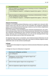 58 | 59 Plausibilitätskontrolle 1. Stehen die Angaben der Ergebniserfassung zur Anwendung von Gurten in Einklang mit den Informationen aus anderen Quellen? keine Auffälligkeiten festgestellt Auffälligkeiten festgestellt (bitte angeben) trifft nicht zu 2. Stehen die Angaben der Ergebniserfassung zur Anwendung von Bettseitenteilen in Einklang mit den Informationen aus anderen Quellen? keine Auffälligkeiten festgestellt Auffälligkeiten festgestellt (bitte angeben) trifft nicht zu Allgemeine Beschreibung Zu prüfen ist, ob freiheitsentziehende Maßnahmen soweit wie möglich durch alternative Maß- nahmen ersetzt und in dem Fall, in dem sie nicht vermeidbar sind, fachgerecht angewendet werden. Es sind sowohl mechanische Fixierungen, Isolation als auch der Einsatz ruhigstellender Medikamente in die Prüfung einzubeziehen. Erfasst wird außerdem, ob eine Einwilligung oder richterliche Genehmigung bzw. eine richter- liche Anordnung vorliegt. Sollten bei einer freiheitsentziehenden Maßnahme keine Einwilligung oder richterliche Genehmigung bzw. keine richterliche Anordnung vorliegen, dann wird dies erfasst, fließt aber nicht in die Beurteilung ein, da es sich um eine ordnungsrechtliche Frage handelt, die die Prüferin oder der Prüfer nicht beurteilen sollte. Die folgenden Fragen sind nur zu bearbeiten, wenn freiheitsentziehende Maßnahmen bei der versorgten Person aktuell eingesetzt werden oder in den letzten vier Wochen eingesetzt wurden. Anderenfalls weiter mit dem nächsten Qualitätsaspekt. Leitfragen 1. Wird/wurde die Notwendigkeit der eingesetzten freiheitsentziehenden Maßnahme/n regelmäßig überprüft? 2. E rfolgt/e der Einsatz der Maßnahme/n fachgerecht? Bewertung der Auffälligkeiten und Defizite A keine Auffälligkeiten B Auffälligkeiten, die keine Risiken oder negativen Folgen für die versorgte Person erwarten lassen C Defizit mit Risiko negativer Folgen für die versorgte Person D Defizit mit eingetretenen negativen Folgen für die versorgte Person