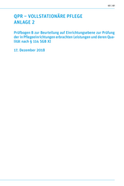 60 | 61 QPR – VOLLSTATIONÄRE PFLEGE ANLAGE 2 Prüfbogen B zur Beurteilung auf Einrichtungsebene zur Prüfung der in Pflegeeinrichtungen erbrachten Leistungen und deren Qua- lität nach § 114 SGB XI 17. Dezember 2018