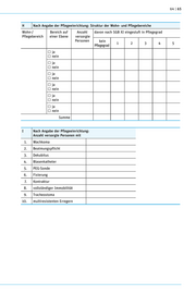 64 | 65 H Nach Angabe der Pflegeeinrichtung: Struktur der Wohn- und Pflegebereiche Wohn-/ Bereich auf Anzahl davon nach SGB XI eingestuft in Pflegegrad Pflegebereich einer Ebene versorgte Personen kein 1 2 3 4 5 Pflegegrad ja nein ja nein ja nein ja nein ja nein ja nein Summe I Nach Angabe der Pflegeeinrichtung: Anzahl versorgte Personen mit 1. Wachkoma 2. Beatmungspflicht 3. Dekubitus 4. Blasenkatheter 5. PEG-Sonde 6. Fixierung 7. Kontraktur 8. vollständiger Immobilität 9. Tracheostoma 10. multiresistenten Erregern