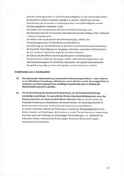 (3) - Fokus Medien: Wie können die Medien ihre Watchdog-Funktion gegen Netzhetze besser wahrnehmen? Maßnahmen zur Prävention von Antimuslimischem Rassismus und Muslimfeindlichkeit in den Regelstrukturen der Bildung sowie der Kinder- und Jugendhilfe. Folgende Maßnahmen sind erforderlich: - Durchführung einer umfassenden und intersektional angelegten Lehrplan- und Schulbuchanalyse - Schulbücher und Bildungsmaterialien müssen frei von rassistischen Bildern und Inhalten sein und stattdessen zu einer kritischen Auseinandersetzung mit rassistischen und muslimfeindlichen Vorurteilen, Strukturen etc. anregen. - Etablierung von Standards und Kriterien für die Veröffentlichung von Schulbüchern und Bildungsmaterialien, - Verankerung der Themen Rassismuskritik und Auseinandersetzung mit Antimuslimischem Rassismus in der Ausbildung von pädagogischen Fachkräften (Lehrer*innen, Erzieher*innen, Sozialpädagog*innen, etc.) nicht nur als freiwillige Zusatzqualifikation, sondern als fester Bestandteil, - Fortbildung von Mitarbeiter*innen in Schulbuchverlagen zu Muslimfeindlichkeit und Antimuslimischem Rassismus, - umfangreiche Förderung von Qualifizierungsmaßnahmen (Weiterbildung) für pädagogische Fachkräfte zu den Themen Rassismus und Muslimfeindlichkeit, - Unterstützung/Förderung von pädagogischen Fachkräften (Lehrer*innen, Erzieher*innen, Sozialpädagog*innen, etc.) mit Mehrfachzugehörigkeiten in der Ausbildung und auf dem Arbeitsmarkt, - _ Beschwerdestrukturen/-möglichkeiten und Anlaufstellen für Schüler*innen, Lehrer*innen und Eltern zur Diskriminierung im Kontext Schule (siehe hierzu auch die Empfehlungen im 3. Handlungsfeld), - Themen Rassismuskritik, Werte im Zusammenleben und Diversität in einem Schulfach „Demokratie“ etablieren. Empfehlungen zum 3. Handlungsfeld (1) (2) Die Einrichtung von Beschwerde- und Antidiskriminierungsstellen/-strukturen für Antimuslimischen Rassismus, die Beschwerden von Betroffenen aufnehmen, dazu ermitteln und Vorschläge für verbindliche Maßnahmen und Sanktionen machen. Bisher gibt es nach unserer Kenntnis keine unabhängige Beschwerdestelle bei der Diskriminierung im Bildungsbereich (Schule, Berufsschule, Hochschule), die die Beschwerden von Betroffenen aufnehmen, dazu ermitteln und Vorschläge für verbindliche Maßnahmen und Sanktionen machen. Solche Strukturen müssen geschaffen werden. Siehe hierzu auch ergänzend Empfehlungen zum 2. Handlungsfeld. Die Ausweitung des Opferschutzes, der Opferberatung und der mobilen Beratung. Konkret sind erforderlich: - Die Bundesregierung hat keine umfassende Kenntnis darüber, in welchen Bundesländern, welche Stellen oder Netzwerke mit welchen Arbeitsschwerpunkten speziell zu Antimuslimischem Rassismus arbeiten. Auch eine Übersicht der Fallzahlen solcher Beratungsstellen liegt nicht vor. Vor diesem Hintergrund ist eine Analyse der