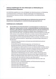 aktuellen Beratungsstruktur in Deutschland grundlegend, um die existierenden Stellen für Betroffene sichtbar und damit zugänglich zu machen. Hierbei kann auf den Erkenntnissen der Kurzstudie zur Beratungsstruktur von CLAIM aufgebaut werden (Erscheinungsdatum: September 2020). - Der Aufbau einer bundesweiten wirksamen Antidiskriminierungs- und Beschwerdestruktur für die zentralen Lebensbereiche (Schule, Bildung, Arbeit, Wohnen) - inklusive Empowerment, - der Aufbau einer bundesweiten wirksamen Beratungs-, Melde- und Unterstützungsstruktur für Betroffene (von Betroffenen), - die Einführung von Rechtshilfefonds für Betroffene von Antimuslimischem Rassismus, - die finanzielle Entschädigung von Synagogen, Moscheen und anderen Gotteshäusern, die von rassistisch motivierten Angriffen betroffen sind sowie - der Schutz von Betroffenen durch Auskunftssperren im Melderegister. - Flankierend zum Ausbau der Beratungs-, Melde- und Unterstützungsstruktur, sind Informationskampagnen für Betroffene rassistischer und speziell antimuslimischer Übergriffe notwendig, um ihnen die Zugänge zur Unterstützung zu schaffen, Empfehlungen zum 4. Handlungsfeld (1) (2) Die umfassende Implementierung anonymisierter Bewerbungsverfahren - unter anderem in der öffentlichen Verwaltung, in Ministerien und in Schulen, um die Chancengleichheit zu verbessern und dem Anspruch einer vielfältigen Gesellschaft auch im Hinblick auf Repräsentation gerecht zu werden. Die Verabschiedung des Demokratiefördergesetzes, um die Demokratieförderung nachhaltig zu verstetigen. Ein wesentliches Ziel des Demokratiefördergesetzes muss das Empowerment der von Rassismus betroffenen Menschen sein. Es braucht zudem die finanzielle Förderung von Maßnahmen, die darauf abzielen, die Gesamtgesellschaft für Rassismus und konkret auch Antimuslimischen Rassismus zu sensibilisieren. Zu nennen sind unter anderem die Förderung von politischen Bildungsangeboten für ein breites Angebot von Projekttagen, Workshops u.ä. zu den Themen Rassismus, Ausgrenzung, Diversität sowie die Förderung von einschlägigen Veranstaltungen, z.B. Tag/Woche der kulturellen Vielfalt, internationale Wochen gegen Rassismus, Aktionswoche gegen Antimuslimischen Rassismus. 10