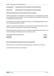 Anlage 4 – Erläuterungen zum Haushaltsplan 2020 Kontengruppe 72 Aufwendungen für den Verwaltungsrat und seine Ausschüsse Kontenart 722 Aufwendungen für den Verwaltungsrat und seine Ausschüsse Konto 7220 Aufwendungen für den Verwaltungsrat und seine Ausschüsse Laufende Aufwendungen für die Mitglieder des Verwaltungsrats, wie z.B. Sitzungsgelder und monatli- che Pauschbeträge für die Vorsitzenden, wie auch die laufenden Aufwendungen für Ausschüsse des Verwaltungsrates, werden hier erfasst. Der Haushaltsansatz für 2020 berücksichtigt die Änderung der „Entschädigungsregelung für die Vertre- ter im Verwaltungsrat des MDK im Saarland“. Aufgrund des vermutlichen Sitzungsbedarfs in Zusammenhang mit dem MDK-Reformgesetz wird je- weils eine zusätzliche Verwaltungsrats- und Beiratssitzung für 2020 geplant. Berücksichtigung findet ebenfalls der Vorsitz im Kooperationsrat/Geschäftsführender Ausschuss und die damit verbundenen Aufwendungen für etwa 4-5 Sitzungen pro Jahr. Voraussichtliches Rechnungsergebnis 2019 21.100 € Ansatz 2019 23.000 € Ansatz 2020 26.000 € Konto 7240 Außergewöhnliche Aufwendungen für den Verwaltungsrat Hierbei handelt es sich um Mittel für besondere Aufwendungen aus dienstlicher Veranlassung. Ein Haushaltsansatz für 2020 ist nicht vorgesehen. Seite | 22