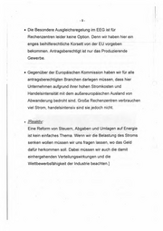 -9- • Die Besondere Ausgleichsregelung im EEG ist für Rechenzentren leider keine Option. Denn wir haben hier ein enges beihilferechtliche Korsett von der EU vorgeben bekommen. Antragsberechtigt ist nur das Produzierende Gewerbe. • Gegenüber der Europäischen Kommission haben wir fur alle antragsberechtigten Branchen darlegen müssen, dass hier Unternehmen aufgrund ihrer hohen Stromkosten und Handelsintensität mit dem außereuropäischen Ausland von Abwanderung bedroht sind. Große Rechenzentren verbrauchen viel Strom, handelsintensiv sind sie jedoch nicht. . ((Reaktiv: Eine Reform von Steuern, Abgaben und Umlagen auf Energie ist kein einfaches Thema. Wenn wir die Belastung des Stroms senken wollen müssen wir uns fragen lassen, wo das Geld dafur herkommen soi. Dabei russen wir auch die damit einhergehenden Verteilungswirkungen und die Wettbewerbsfähigkeit der Industrie beachten.]