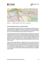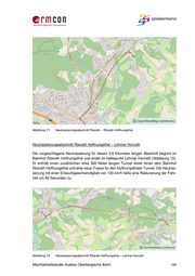 Die Ersatzeinspeisung sollte im UW 1 über eine separate Schaltzelle angebunden werden, so dass diese nur im Bedarfsfall zugeschaltet werden kann. Aus logistischen Gründen ist der Aufbau der Speiseleitungen für die Ersatzeinspeisung mit dem Bau der Fahrleitung um- zusetzen. 4.3.6 Neutrassierungen in Planfall 7 In Planfall 7 wird untersucht, welche Streckenführung gefunden werden kann, die ab- schnittsweise machbar erscheint und erheblich größere Gleisbögen aufweist und damit hö- here Geschwindigkeiten zulässt (vgl. auch Kap. 3.10). Die damit möglichen Reisezeitver- kürzungen sind Tabelle 18 zu entnehmen. Tabelle 18: Reisezeiten der einzelnen Neutrassierungsabschnitte in Planfall 7 Im Folgenden werden die einzelnen hier ermittelten Neutrassierungsabschnitte beschrie- ben. In den Abbildungen sind die Verläufe der Neutrassierungsabschnitte in Form einer roten Linie dargestellt. Die Kilometrierungen von Anfang und Ende eines Abschnitts sind ebenfalls in Rot gekennzeichnet. Neutrassierungsabschnitt Porz Heumar In der Ausfahrt vom Bahnhof Porz Heumar in Richtung Gummersbach befindet sich derzeit ein Gleisbogen in der Strecke, der die zulässige Höchstgeschwindigkeit auf 100 km/h be- grenzt. Mit einer Anpassung der Trassierung und Anhebung der zulässigen Höchstge- schwindigkeit auf 120 km/h über eine Streckenlänge von knapp 300 Metern ließe sich hier die Fahrzeit um 6 Sekunden reduzieren (Abbildung 70). Machbarkeitsstudie Ausbau Oberbergische Bahn 103
