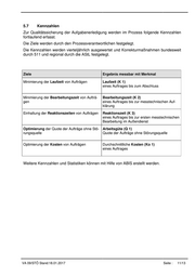 5.7 Kennzahlen Zur Qualitätssicherung der Aufgabenerledigung werden im Prozess folgende Kennzahlen fortlaufend erfasst. Die Ziele werden durch den Prozessverantwortlichen festgelegt. Die Kennzahlen werden vierteljährlich ausgewertet und Korrekturmaßnahmen bundesweit durch 511 und regional durch die AStL festgelegt. Ziele Ergebnis messbar mit Merkmal Minimierung der Laufzeit von Aufträgen Laufzeit (K 1) eines Auftrages bis zum Abschluss Minimierung der Bearbeitungszeit von Aufträ- Bearbeitungszeit (K 2) gen eines Auftrages bis zur messtechnischen Auf- klärung Einhaltung der Reaktionszeiten von Aufträgen Reaktionszeit (K 3) eines Auftrages bis zur ersten messtechnischen Bearbeitung im Außendienst Optimierung der Quote der Aufträge ohne Stö- Arbeitsgüte (Q 1) rungsquelle Quote der Aufträge ohne Störungsquelle Optimierung der Kosten von Aufträgen Durchschnittliche Kosten (Ko 1) eines Auftrages Weitere Kennzahlen und Statistiken können mit Hilfe von ABIS erstellt werden. VA 09/STÖ Stand:18.01.2017 Seite : 11/13