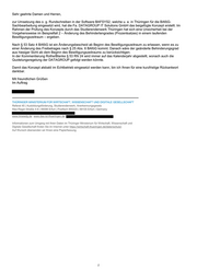Sehr geehrte Damen und Herren, zur Umsetzung des o. g. Rundschreiben in der Software BAFSYS2, welche u. a. in Thüringen für die BAföG- Sachbearbeitung eingesetzt wird, hat die Fa. DATAGROUP IT Solutions GmbH das beigefügte Konzept erstellt. Im Rahmen der Prüfung des Konzepts durch das Studierendenwerk Thüringen hat sich eine Unsicherheit bei der Vorgehensweise im Beispielfall 2 – Änderung des Behindertengrades (Prozentsatzes) in einem laufenden Bewilligungszeitraum – ergeben. Nach § 53 Satz 4 BAföG ist ein Änderungsbescheid ab Beginn des Bewilligungszeitraum zu erlassen, wenn es zu einer Änderung des Freibetrages nach § 25 Abs. 6 BAföG kommt. Danach wäre der geänderte Behinderungsgrad aus hiesiger Sicht ab dem Beginn des Bewilligungszeitraums zu berücksichtigen. In der Kommentierung Rothe/Blanke § 53 RN 24 wird immer auf das Kalenderjahr abgestellt, wonach auch die Quotelungsregelung der DATAGROUP gefolgt werden könnte. Damit das Konzept alsbald im Echtbetrieb eingesetzt werden kann, bin ich Ihnen für eine kurzfristige Rückantwort dankbar. Mit freundlichen Grüßen Im Auftrag THÜRINGER MINISTERIUM FÜR WIRTSCHAFT, WISSENSCHAFT UND DIGITALE GESELLSCHAFT Referat 45 | Ausbildungsförderung, Studierendenwerk, Anerkennungsgesetz Max-Reger-Straße 4-8 | 99096 Erfurt | Postfach 900225 | 99105 Erfurt | Germany www.tmwwdg.de www.das-ist-thueringen.de Informationen zum Umgang mit Ihren Daten im Thüringer Ministerium für Wirtschaft, Wissenschaft und Digitale Gesellschaft finden Sie im Internet unter https://wirtschaft.thueringen.de/datenschutz/. Auf Wunsch übersenden wir Ihnen eine Papierfassung. 2
