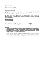 STOB-Nr: 891287 Erteilungsdatum: 25.11.2021 Rechtsbehelfsbelehrung: Gegen diesen Bescheid kann innerhalb eines Monats nach Bekanntgabe (bei Zustellung mittels Einschreibens: Zustellung) Widerspruch bei der Bundesnetzagentur für Elektrizität, Gas, Telekommunikation, Post und Eisenbahnen, Tulpenfeld 4, 53113 Bonn oder bei einer sonstigen Dienststelle der Bundesnetzagentur erhoben werden. Es dient einer zügigen Bearbeitung Ihres Widerspruches, wenn er bei der Bundesnetzagentur, Außenstelle Leipzig, Dienstleistungszentrum 2, Zeppelinstr. 16, 99096 Erfurt eingelegt wird. Bundesnetzagentur Außenstelle Leipzig Diese Standortbescheinigung wurde maschinell Anlage(n) erstellt und ist ohne Unterschrift gültig Anlage 1 Hinweise: - Arbeitsschutzrechtliche Aspekte werden von dieser Standortbescheinigung nicht berührt. Für Arbeitnehmer, die im Umfeld von Sendeanlagen Arbeiten ausführen, gelten spezielle Grenzwerte. Nähere Informationen hierzu geben die Berufsgenossenschaften und das Bundesministerium für Arbeit und Soziales (BAMS). - Für ein ganz oder teilweise erfolgloses Widerspruchsverfahren werden grundsätzlich Kosten (Gebühren und Auslagen) erhoben. Für die vollständige oder teilweise Zurückweisung eines Widerspruchs wird grundsätzlich eine Gebühr bis zur Höhe der für die angefochtene Amtshandlung festgesetzten Gebühr erhoben.