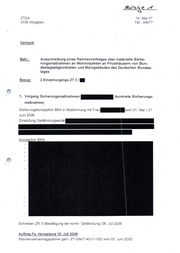 Al ag € ‚1 ZT2/4 14. Mai 07 VOB Vergaben Tel.: 34577 Vermerk Betr.: Ausschreibung eines Rahmenvertrages über materielle Siche- rungsmaßnahmen an Wohnobjekten an Privathäusern von Bun- destagsabgeordneten und Bürogebäuden des Deutschen Bundes- tages Bezug: 2 Einzelvorgänge ZT3/ 1. Vorgang Sicherungsmaßnahmen eh (konkrete Sicherungs- maßnahme) Sicherungskonzeption BKA in Abstimmung mit Fra on 31. Mai / 21 Juni 2006 Einstung Geährcucctr TE NIEREN en. \ Konzeption BKA;: Schreiben ZR 3 (Bestätigung der konkr. Gefährdung) 06. Juli 2006 Auftrag Fa. Hengsberg 18. Juli 2006 Rahmenzeitvertragspartner gem. ZT-GM/T-40-01-002 vom 05. Juni 2002