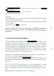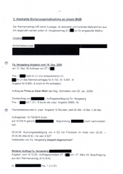 2. Abstrakte Sicherungsmaßnahme an einem MdB Der Rahmenvertrag trifft keine Aussage, ob abstrakte und konkrete Maßnahmen aus ihm abgerufen werden sollen (It. Vergabeantrag Zt Wu für eingestufte MdB’s) Sicherheitskonzept: Fa. Hengsberg Angebot vom 19. Dez. 2005 am 12. Dez. 05 Aufmass von ZT SR Pos. 1 ch im LV (nur entsprechend LV) Win LV des Rahmenvertrages für 5.153,- € / 5.887,- € Angebot für 6.885,- € (nicht im RV enthalten) Auftrag an Firma zu freier Wahl des Abg. (Schreiben vom 03. Jan. 2006) Direktauftrag von EN - Auftragsbestätigung Fa. Hengsberg Pos. 1 nit 7.121,- € teurer als urspr. Angebot (6885,- €) Facharbeiterstunden It. urspr. Angebot 12 Stunden, jetzt 20 Std. +9 Std. = 29 Std. Auftragsbest. 16.706,66 € brutto auf 16.000 € gekürzt 4 Besründung: nicht nachvolizieh- bar) 26.04.06: Buchungsbestätigung von 4 EZ mit Frühstück im Hotel vom 02.05. - 05.05.06 (492,00 €) - für wen 4 EZ? Hotelkosten von Fa. Hengsberg doppelt abgerechnet? Weiterer Auftrag Fa. Hengsberg Se Angebot vom 19.12.05; Auftragsschreiben ZT 3 om 07. März 06; Beauftragung aus dem Rahmenvertrag (814,09 €) 2x Oo: ı (\v 57)