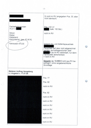 Facharbeiterstunden 110,0 h Kleinmaterial (Klebeband, Silicon, Tur- bospray = 61,- €) Anreisepauschale DE Fährkosten 470,00 € Pos. 132 (aber nur 100 Std. !) hier bereits 185,5 Stunden !!!! nicht im RV Pos. 133 - u: Anreisepauschale nur für Aufträge unter € (hier Gesamt-Auftrag ca. 52.000 €; Splittung und Abrechnung in 2 Aufträgen) Warum ist ein zweiter gesonderter Auf- trag erteilt und abgerechnet worden? = keine Begründung in der Akte nicht im RV (in Pauschale enthalten) ca. 5.800 € (m. Anreisepauschale) von 15.246,20 € Netto-Auftragsvolumen nicht aus RV beauftragt