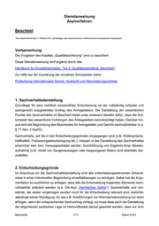 Dienstanweisung Asylverfahren Bescheid „Grundsatzreferat Asyl“ = Referat 61A „Grundlagen des Asylverfahrens, Gemeinsames europäisches Asylsystem“ Vorbemerkung: Die Vorgaben des Kapitels „Qualitätssicherung“ sind zu beachten! Diese Dienstanweisung wird ergänzt durch das Handbuch für Einzelentscheider, Teil II, Qualitätsstandards „Bescheid“. Zur Hilfe bei der Zuordnung der einzelnen Schutzarten siehe: Prüfschema Internationaler Schutz, Asylrecht und Abschiebungsverbote. 1. Sachverhaltsdarstellung Grundlage für eine rechtlich einwandfreie Entscheidung ist der vollständig erfasste und sachgerecht ausgewertete Vortrag des Antragstellers. Die Darstellung der wesentlichen Punkte des Sachverhaltes im Bescheid bietet unter anderem Gewähr dafür, dass die Ent- scheider das wesentliche Vorbringen des Antragstellers berücksichtigt haben. Darüber hin- aus wird die Begründung des Bescheides für Antragsteller und Gericht nachvollziehbar (s.a. § 77 Abs. 2 AsylG). Sachverhalte, auf die in den Entscheidungsgründen eingegangen wird (z.B. Widersprüche, Haftbefehl, Freilassungsbescheinigung etc.), müssen in der Darstellung des Sachverhaltes erkennbar sein bzw. herausgearbeitet werden. Durchführung und Ergebnis einer Beweis- aufnahme (z.B. Inhalt von Zeugenaussagen oder beigezogener Akten) sind ebenfalls dar- zustellen. 2. Entscheidungsgründe Im Anschluss an die Sachverhaltsdarstellung sind alle entscheidungsrelevanten Erkennt- nisse in einer individuellen Begründung einzelfallbezogen zu würdigen. Dabei hat die Argu- mentation so ausführlich zu erfolgen, dass alle die Entscheidung tragenden Elemente nach- vollziehbar erläutert werden (s.a. DA-Asyl „Rechtliches Gehör“). Sachverhalte und Um- stände, die weder vorgetragen wurden noch für die Entscheidung relevant sind, bedürfen allerdings keiner Würdigung. So wie z.B. Ausführungen zur Wehrdienstentziehung nur dann erfolgen, wenn ein entsprechender Sachvortrag vorliegt, so muss etwa auch bei Darstellung der allgemeinen politischen Lage im Herkunftsstaat darauf geachtet werden, dass nur zum Bescheide 1/11 Stand 01/21