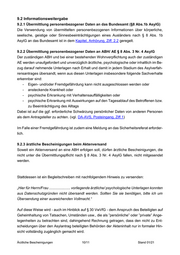 9.2 Informationsweitergabe 9.2.1 Übermittlung personenbezogener Daten an das Bundesamt (§8 Abs.1b AsylG) Die Verwendung von übermittelten personenbezogenen Informationen über körperliche, seelische, geistige oder Sinnesbeeinträchtigungen eines Ausländers nach § 8 Abs. 1b AsylG an das Bundesamt ist in dem Kapitel, Anhörung, Ziff. 2.2 geregelt. 9.2.2 Übermittlung personenbezogener Daten an ABH/ AE § 8 Abs. 3 Nr. 4 AsylG Der zuständigen ABH und bei einer bestehenden Wohnverpflichtung auch der zuständigen AE werden unaufgefordert und unverzüglich ärztliche, psychologische oder inhaltlich im Be- zug darauf nehmende Unterlagen nach Erhalt und damit in jedem Stadium des Asylverfah- rensantrages übersandt, wenn aus diesen Unterlagen insbesondere folgende Sachverhalte erkennbar sind: - Eigen- und/oder Fremdgefährdung kann nicht ausgeschlossen werden oder - ansteckende Krankheit oder - psychische Erkrankung mit Verhaltensauffälligkeiten oder - psychische Erkrankung mit Auswirkungen auf den Tagesablauf des Betroffenen bzw. zu Beeinträchtigung des Alltags Dabei ist auf die ggf. erforderliche Schwärzung persönlicher Daten von anderen Personen als dem Antragsteller zu achten. (vgl. DA-AVS, Posteingang, Ziff.1) Im Falle einer Fremdgefährdung ist zudem eine Meldung an das Sicherheitsreferat erforder- lich. 9.2.3 ärztliche Bescheinigungen beim Aktenversand Soweit ein Aktenversand an eine ABH erfolgen soll, dürfen ärztliche Bescheinigungen, die nicht unter die Übermittlungspflicht nach § 8 Abs. 3 Nr. 4 AsylG fallen, nicht mitgesendet werden. Stattdessen ist ein Begleitschreiben mit nachfolgendem Hinweis zu versenden: „Hier für Herrn/Frau ..................... vorliegende ärztliche/ psychologische Unterlagen konnten aus Datenschutzgründen nicht übersandt werden. Sollten Sie sie benötigen, bitte ich um Übersendung einer ausreichenden Vollmacht.“ Auf diese Weise wird - auch im Hinblick auf § 30 VwVfG - dem Anspruch des Beteiligten auf Geheimhaltung von Tatsachen, Umständen usw., die als ”persönliche” oder ”private” Ange- legenheiten zu betrachten sind, dahingehend Rechnung getragen, dass den nicht zu Ent- scheidungen über den Asylantrag beteiligten Behörden der Akteninhalt nur in formaler Hin- sicht vollständig zugänglich gemacht wird. Ärztliche Bescheinigungen 10/11 Stand 01/21