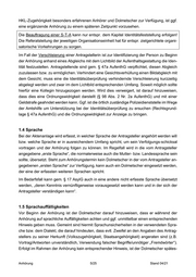 HKL-Zugehörigkeit besonders erfahrenen Anhörer und Dolmetscher zur Verfügung, ist ggf. eine ergänzende Anhörung zu einem späteren Zeitpunkt vorzusehen. Die Beauftragung einer S-T-A kann nur entspr. dem Kapitel Identitätsfeststellung erfolgen! Die Referatsleitung der jeweiligen Organisationseinheit hat für entspr. zielgerichtete organi- satorische Vorkehrungen zu sorgen. Im Fall der Verschleierung einer Antragstellerin ist zur Identifizierung der Person zu Beginn der Anhörung anhand eines Abgleichs mit dem Lichtbild der Aufenthaltsgestattung die Iden- tität festzustellen. Antragstellende sind gem. § 47a AufenthG verpflichtet, diesen Abgleich zuzulassen bzw. zu ermöglichen. Verhindert eine Gesichtsverhüllung einen Bildabgleich mit dem Gesicht, muss eine die Identitätsüberprüfung verhindernde Verschleierung kurzzeitig abgelegt werden und zwar im dem Lichtbild entsprechenden Umfang. Soweit möglich sollte hierfür eine Kollegin hinzugezogen werden. Wird dies verweigert, ist darauf hinzuweisen, dass dies eine Ordnungswidrigkeit darstellt (§ 98 Abs. 2 Nr. 2a AufenthG) und mit einer Geldstrafe geahndet werden kann. Ggf. ist die örtlich zuständige Polizeidienststelle im Wege der Amtshilfe um Unterstützung bei der Identitätsüberprüfung zu ersuchen (Rechtsgrund- lage § 47a AufenthG) und die Ordnungswidrigkeit zur Anzeige zu bringen. 1.4 Sprache Bei der Aktenanlage wird erfasst, in welcher Sprache der Antragsteller angehört werden will bzw. welche Sprache er in ausreichendem Umfang spricht, um sein Verfolgungs-schicksal vortragen und der Anhörung folgen zu können. Im Regelfall wird in die vom Antragsteller angegebene „erste Sprache“, die normalerweise auch die Mutter- bzw. Landessprache sein sollte, übersetzt. Steht zum Anhörungstermin kein Dolmetscher in der vom Antragsteller an- gegebenen „ersten Sprache“ zur Verfügung, kann auch ein Dolmetscher eingesetzt werden, der eine der erfassten weiteren Sprachen spricht. Im Bedarfsfall kann gem. § 17 AsylG auch in eine andere nicht erfasste Sprache übersetzt werden, „deren Kenntnis vernünftigerweise vorausgesetzt werden kann und in der sich der Antragsteller verständigen kann“. 1.5 Sprachauffälligkeiten Vor Beginn der Anhörung ist der Dolmetscher darauf hinzuweisen, dass er während der Anhörung auf sprachliche Auffälligkeiten achten und ggf. unmittelbar einen entsprechenden Hinweis geben muss. Gemeint sind hiermit Sprachunsicherheiten in der verwendeten Spra- che bzw. dem Dialekt, die darauf hindeuten, dass evtl. Zweifel an den Angaben des Antrag- stellers zu seiner Herkunft (Volkszugehörigkeit, Staatsangehörigkeit) angeraten sind (z.B. Vortrag/Antworten unverständlich, Verwendung falscher Begriffe/unnötiger „Fremdwörter“). Erfolgt im Rahmen der Anhörung kein entsprechender Hinweis, ist der Dolmetscher spätes- Anhörung 5/25 Stand 04/21