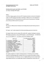 Bundesministerium für Verkehr Berlin, den 07.06.2021 und digitale Infrastruktur Berichtsanforderung des Abg. Kindler vom 07.05.2021 zum Thema: Nachträge ÖPP-Projekte Frage 1: In welchem Umfang ergaben sich bei den ÖPP-Projekten des Bundes im Bereich der Bundesfern- straßen seit 2009 Nachträge (bitte Höhe der Nachträge in Millionen Euro sowie Zeitpunkte der Nachträge für jedes ÖPP-Projekt tabellarisch darstellen und die Gesamtsumme der Nachträge für den Zeitraum 2009 bis Mai 2021 ausweisen)? Frage 2: Was waren seit 2009 jeweils die Gründe für die Nachträge (bitte für jeden Nachtrag einzeln be- gründen)? - Die Fragen 1 und 2 werden aufgrund ihres Sachzusammenhangs gemeinsam beantwortet. Die folgende Tabelle weist die zwischen 2009 und Mai 2021 vergüteten Nachträge der einzelnen ÖPP-Projekte summarisch aus. Bei den ÖPP-Projekten A 3 (AK Fürth/Erlangen - AK Biebelried) und A 49 (AD Ohmtal (A 5) - AS Fritzlar) wurden keine Nachträge vergütet. Annn.n: Von 2009 bis Mai 2021 vergütete OPP-Projekt Nachträge (Mio. Euro) A 1, AK Bremen - AD Buchholz 17,283 A 4, Herleshausen (LGr. HE/TH) - Gotha 9,534 A 5, AS Offenburg - Malsch - 0,589 A 6, Wiesloch/Rauenberg - AK Weinsberg 9,378 A 7, AD Hamburg/Nordwest - AD Bordesholm 48,111 A 7, AS Göttingen - AS Bockenem 113,029 A 8, Augsburg/West - München/Allach 9,441 A 8, Ulm/Elchingen - Augsburg/West : 3,046 A 9, LGr. TW/BY - AS Lederhose 1,498 A 10/A 24, AS Neuruppin - AD Pankow 4,556 A 94, Forstinning - Marktl ; 3,907 Summe 220,590 Die Angaben bezüglich der vergüteten Nachtragssummen in Verbindung mit den jeweiligen Gründen der Einzelnachträge geben Aufschluss über die mit einzelnen Sachverhalten verbunde- nen Kostenerstattungen sowie Hinweise zu den zur Aufgabenerfüllung durch die privaten Partner aufgewendeten Ressourcen und betreffen daher exklusives kaufmännisches Wissen Dritter. Sie Gr